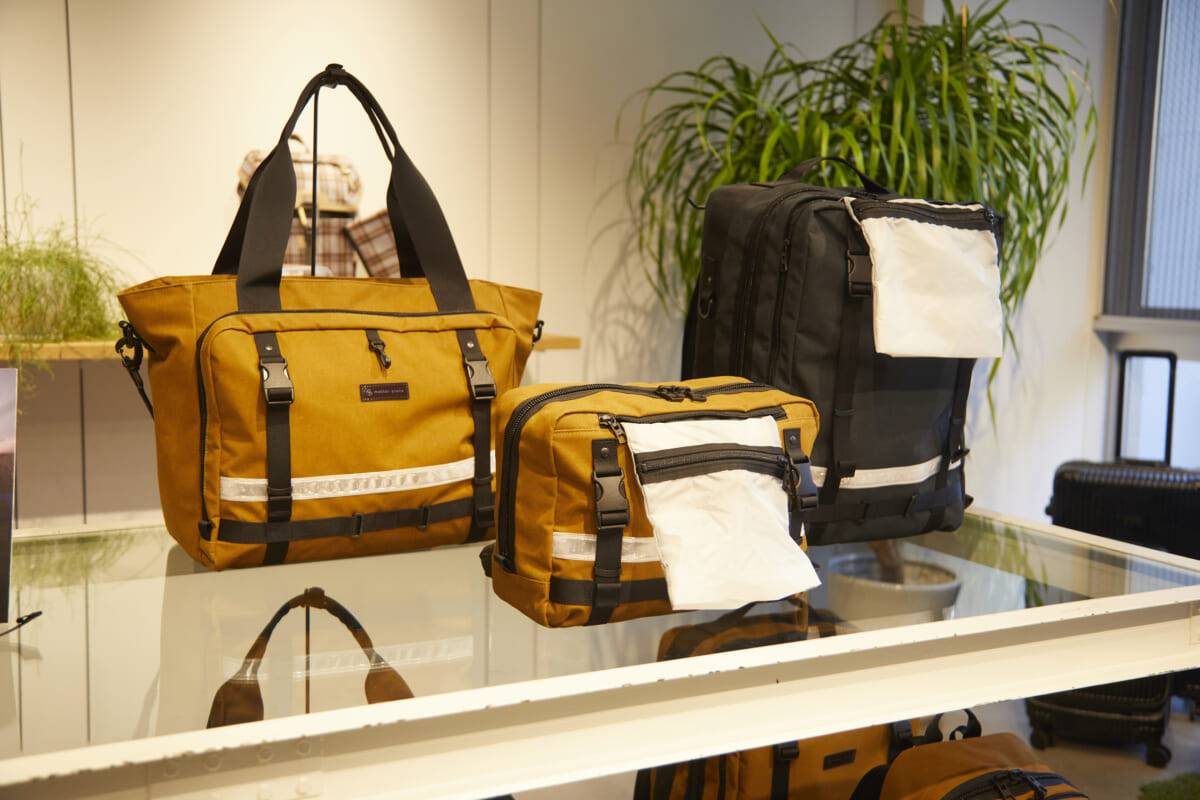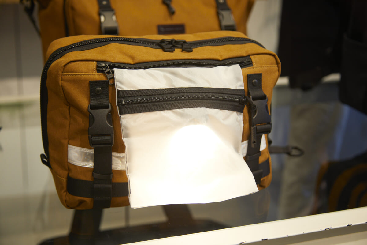 電球色のヘッドランプやランタンを展開する「マイルストーン(milestone)」とのコラボレーション。コレクションのすべてに、アメリカ軍のテントに使用されていた生地をもとにした、自己消火性のある難燃繊維をボディに採用しています。内装には、非常持出袋にも使われている防災認定取得の生地が施されているので、防災グッズを収納しておくにはビッタリ。ホイッスル機能付きのパーツを装備、「マスターピース」のネームは約39度以上で黄色に変色して注意喚起を呼びかけるなど、気の利いた機能も搭載。メインファスナーには鍵穴が付いているので、避難所での防犯性も安心です。「マスターピース」らしい機能性とデザイン性を両立させたコレクションで、防災の準備をしましょう。
