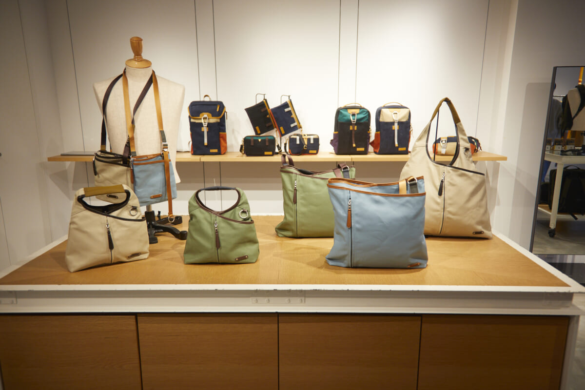 岡山県倉敷市で130年以上前から帆船の帆やトラックの幌を製造し、現在も国内生産の約7割を担う「タケヤリ」のキャンバスを使ったコレクション「pally」。付属しているレザーは、イタリアで1898年に創業した老舗タンナー「モンフリーニ ペラーミ社」のスムースレザー。厚手で丈夫な8号キャンバス生地に上品な色合いのレザーを組み合わせ、エイジングを楽しめるバッグが完成しました。いくつも収納ポケットが設けられているので利便性も高いです。