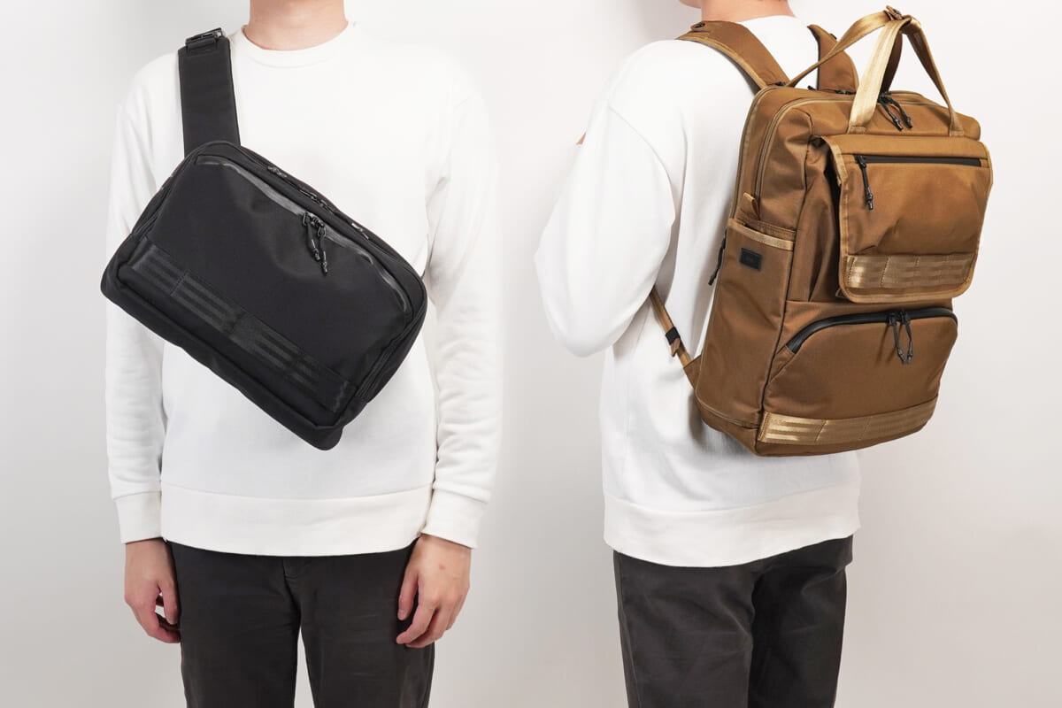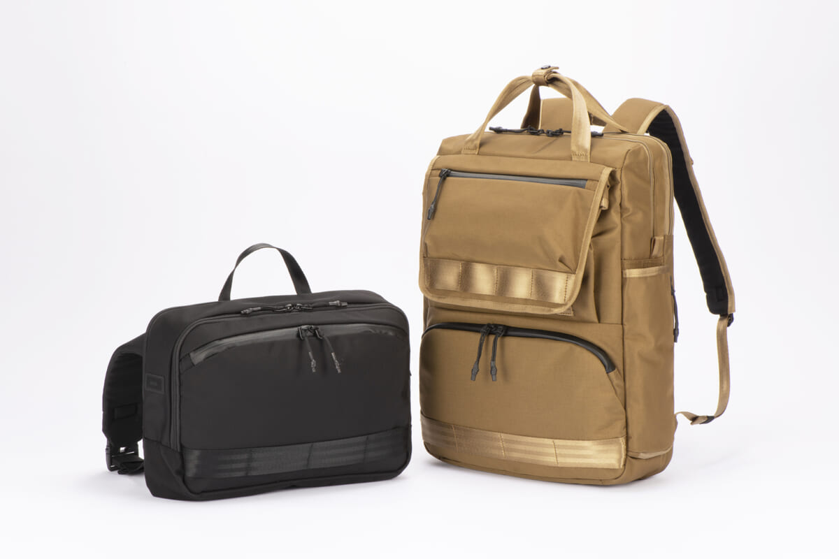 コロナ禍でワークスタイルが多様化し、ビジネスファッションのカジュアル化が進んでいます。「マルチタイド」はオンオフ兼用可能なデザインで、自転車通勤に適したハンズフリー形状を揃えています。ミニマルスタイルに対応するスリング型ボディバッグと、荷物が多いノマドワーカーに向けたリュック型をラインナップしています。サイズはボディバッグが小、大。リュックが小、中、大から選べます。