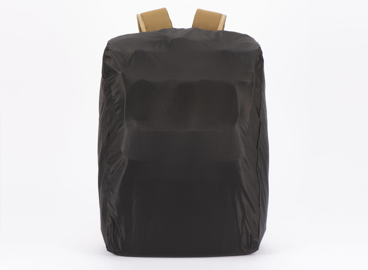 リュック型にはウォーターシールドポケットやレインカバーを搭載し、雪やゲリラ豪雨に対応。雨や埃が浸入しにくい構造で、水濡れに弱い腕時計やスマートフォンなどの収納に適しています。気温の高い時期は背面のエアベンチレーション構造が背中の蒸れを軽減します。さらに下部には取り外し可能なレインカバーが収納されています。