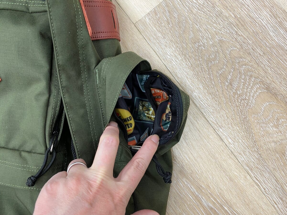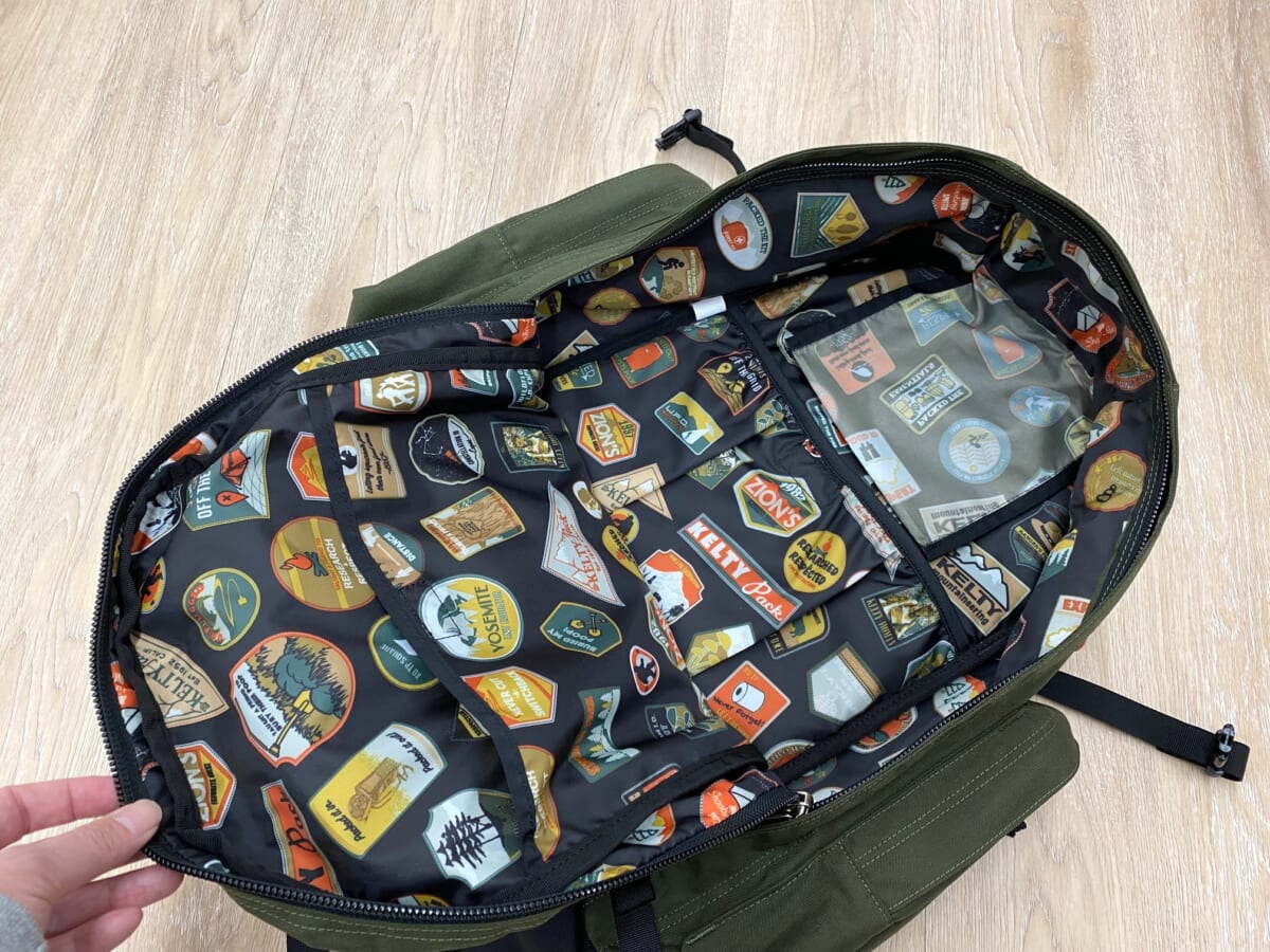 プロダクトの裏地に多様なワッペンをプリント! ブランドにまつわるロゴのほか、「LNT」を実践するための目標も描かれています。ちなみにLNTとは「Leave No Trace」の略で、自然を利用する全ての人が環境に対して責任を持ち、環境へ与える影響を最小限に考えながら楽しく利用するための環境倫理プログラムのこと。それを誰にでもわかりやすく楽しく実践できるよう、ポップかつユーモラスに、ワッペンの柄で表現しています。