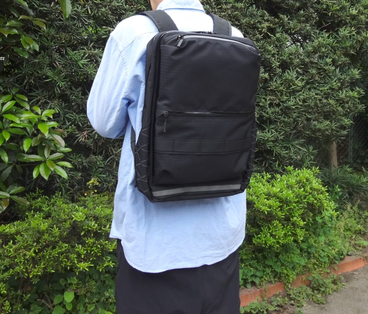 背中がとてもスースーするのは、自転車通勤はもちろん普段使いでもとても嬉しいですね。さらに今作ではリフレクターが追加装備され、夜間での安全性も向上させています。オールブラックのシンプルなデザインですが、ウェビングテープでミリタリーフレーバーもさり気なく加えていたりと、ナリフリらしい遊び心も追加された一品といえますね!