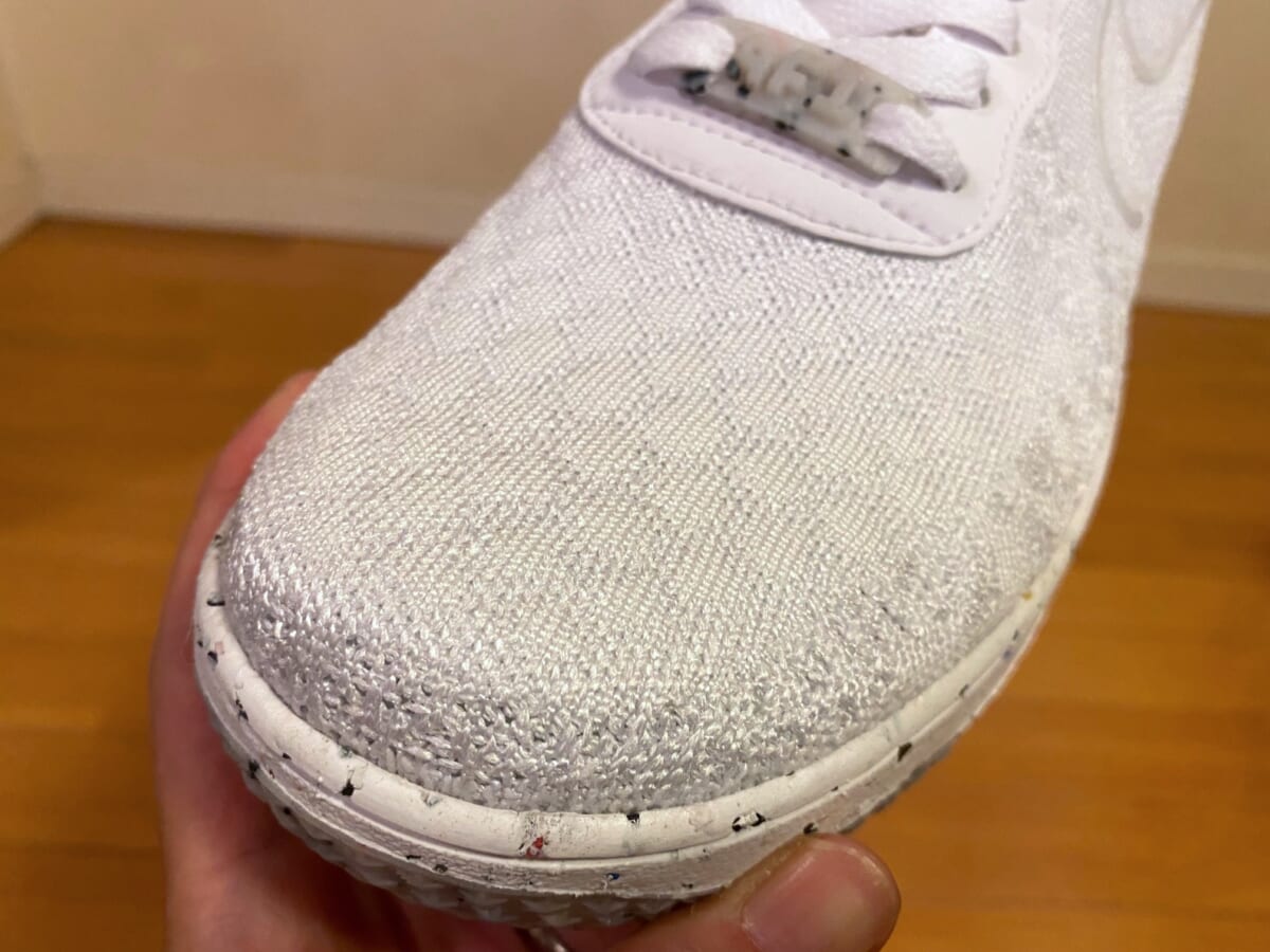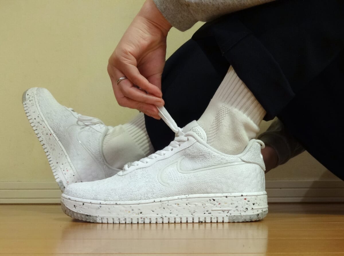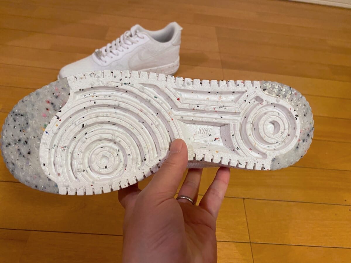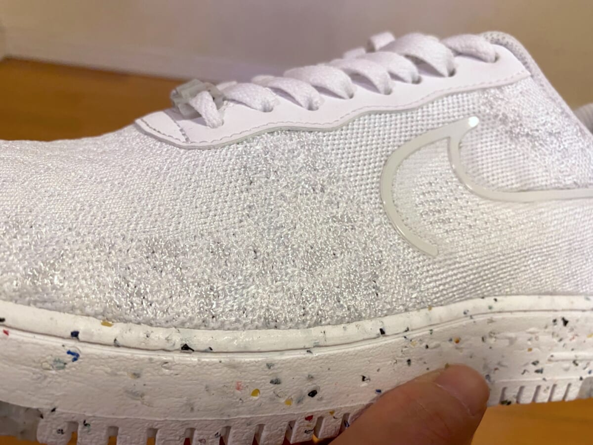 今作のベースとなっているのは、リサイクル素材を使用したサスティナビリティモデル「ナイキ エア フォース 1 クレーター 」。リサイクル素材を重量の20%以上使用し、ソールには使われなくなったシューズをリサイクルして作る素材「Nike Grindラバー」をミックス。さらに通気性の高いフライニットをアッパーに使用して、初夏にピッタリな履き心地へと仕上げられています。