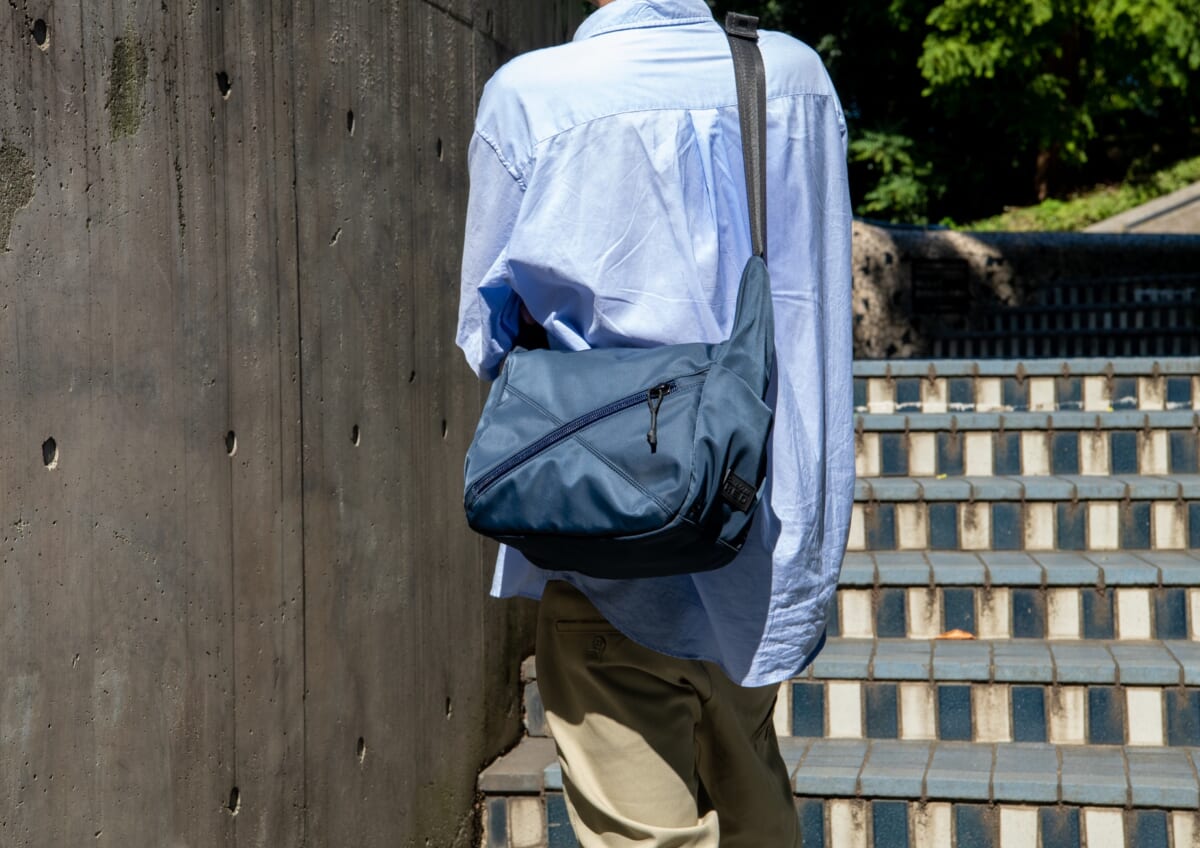 今回紹介するのは、サムソナイトが展開するタウンユース向けブランド「サムソナイトレッド」の「バイアスジャック3」のショルダーバッグです。ユニセックスに使えるコンパクトサイズですが、間口が大きく開き、収納物の出し入れがとてもラクにできるのが特徴。テープ、引手には光を受けると反射するリフレクターを織り込んだ部材も使用しています。