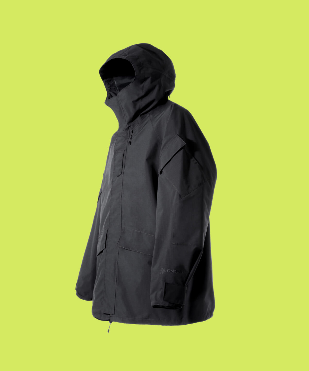 第三世代のボディデザインに、第一世代のフードデザインを組み合わせ、両袖ポケットの取り付け角度を変更。表地は耐久性に優れるリップストップナイロンを採用しています。