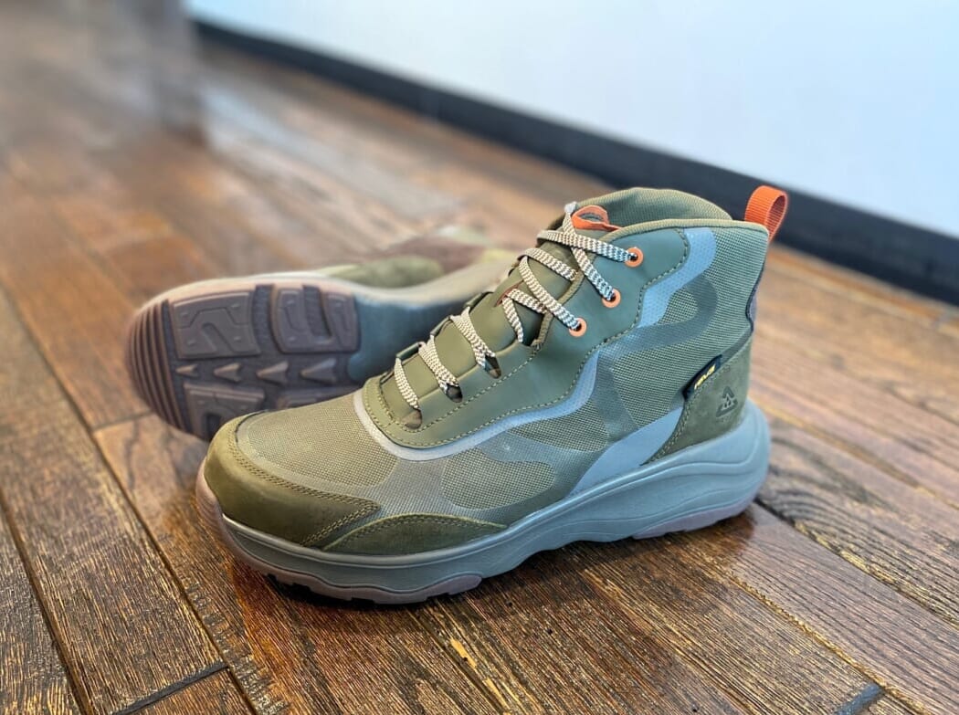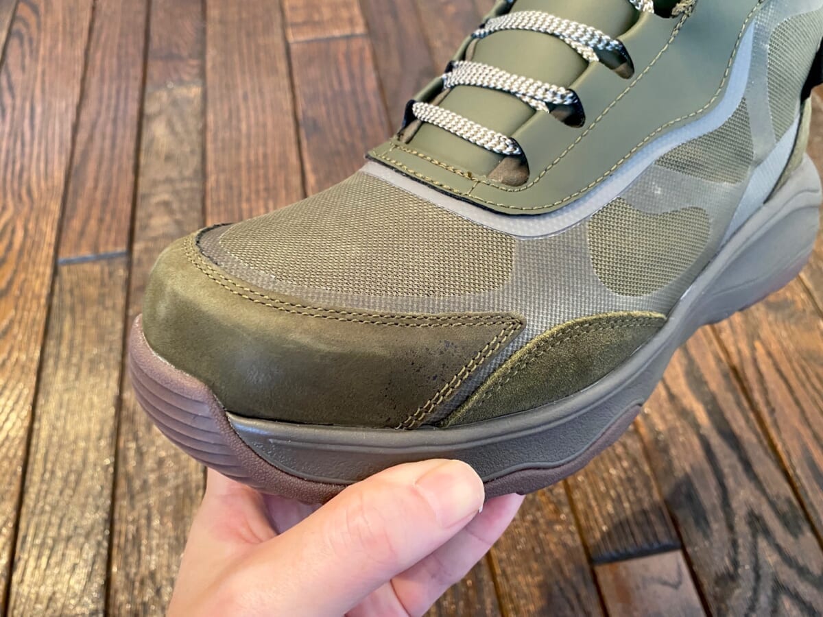 本作は、軽量で通気性に優れ、雨天には防水性を発揮する、全天候型のハイキングシューズ。優れた快適性と安定性の高いソール構造で、スムーズなトレッキングをサポートしてくれます。テキスタイルとレザーのコンビネーションによる、モダンで洗練されたルックスも特徴的ですね。また、随所に環境に配慮した素材を使用しているのもポイントとなっています。