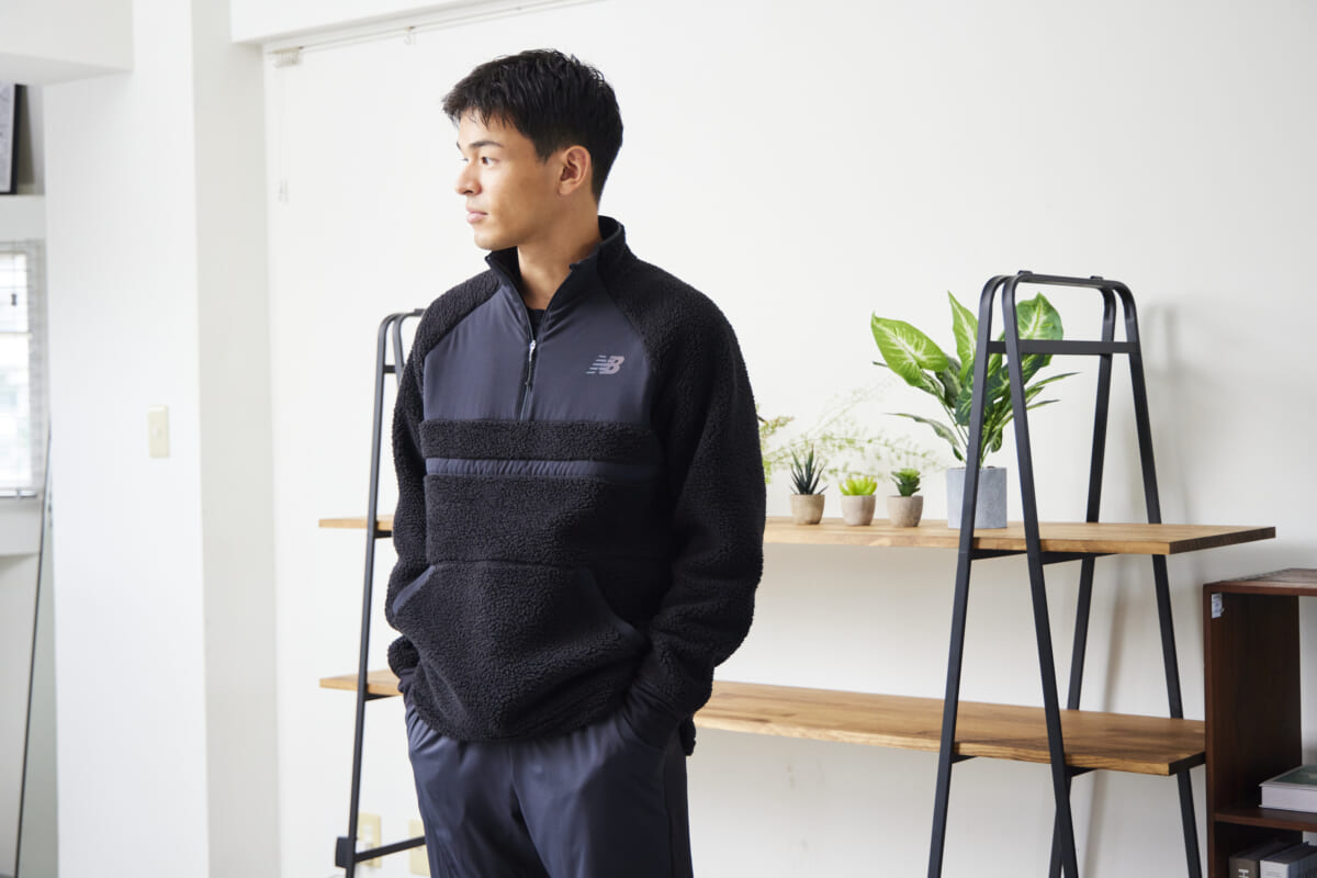 Fresh Foam X Kaiha v1と併せて紹介したいのが、これからのシーズン大活躍してくれそうなニューバランスのフリースウェア「Q Speed シェルパ アノラック」。軽い着用感ながら優れた保温性も兼ね備えるフリースは、トレーニングやアウトドアだけでなく、普段の街歩きにも最適! 散歩や、近所への買い物など、秋冬のちょっとしたお出かけシーンに大活躍してくれること間違いなしです。