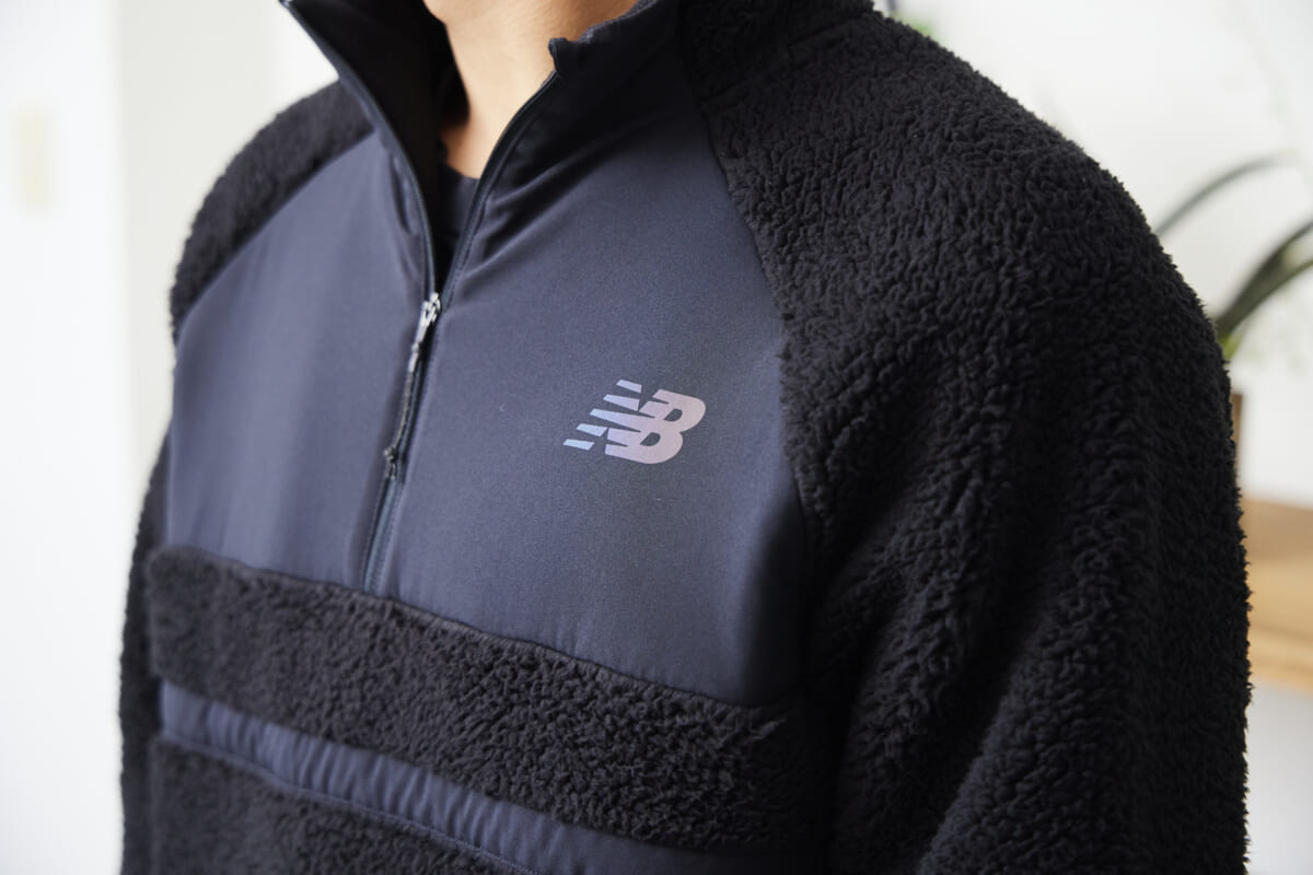 寒さを防ぐ優れた保温性と、吸汗速乾機能で衣類内の快適さを保つ独自の技術「NB HEAT(エヌビーヒート)」を搭載したシェルパ素材を使用しながらも、脇下はニット素材を採用。フリース特有の動きにくさがまるでない、快適な着用感はランナーにとっても嬉しい限り。