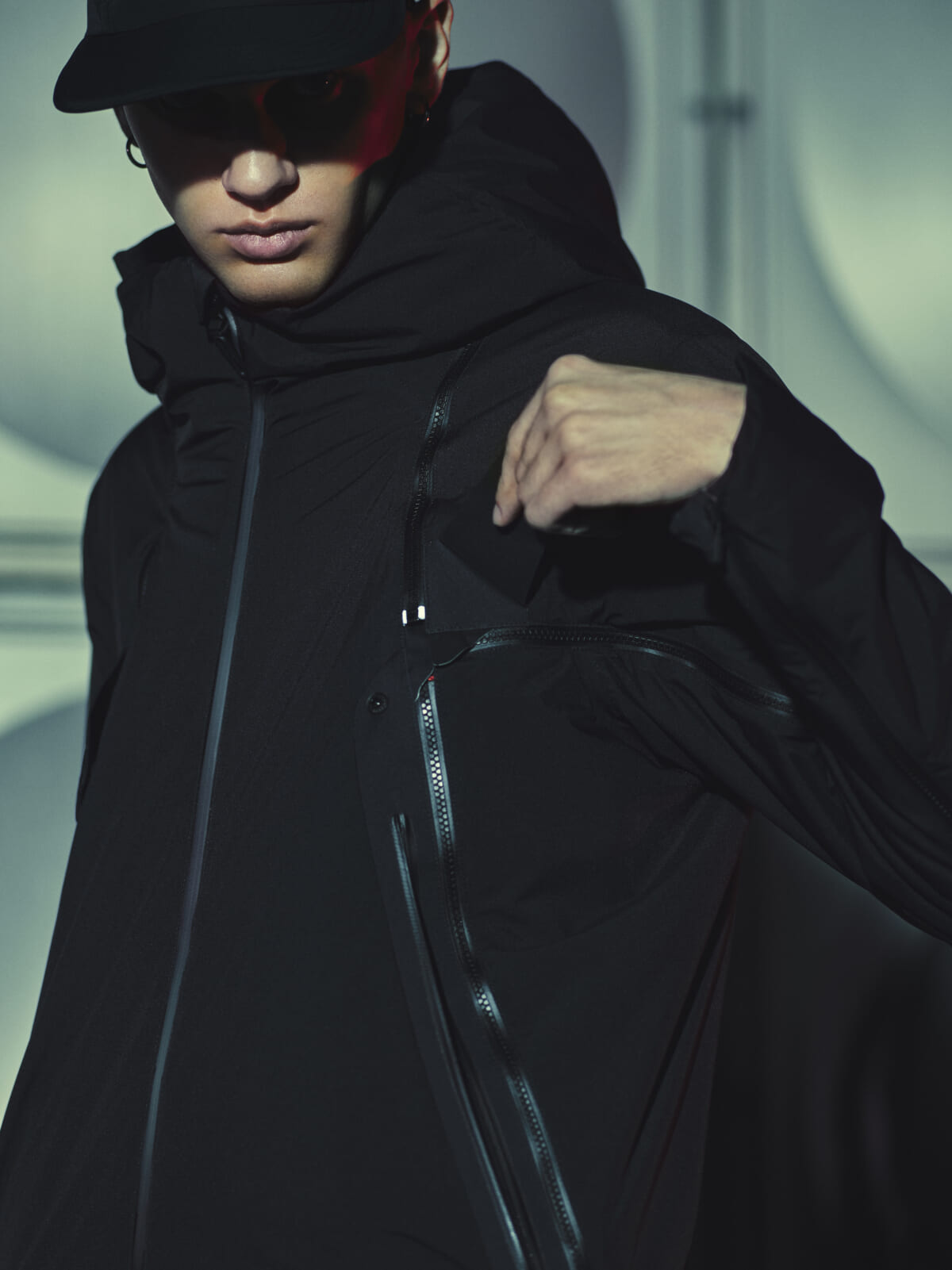 現代の多様化する環境と価値観に適応し、あらゆる人が自由にファッションを楽しみ進化させていくことをコンセプトに展開される「コネクト」は、ユニットに分かれた各パーツを繋げるドッキングシステムを搭載。保温性や防風性など機能性を備えたユニットを変化させることで、天候や気温によってアイテムのデザインが変わり、素材の違いで機能も変化。デザインやスタイルなど、ユーザー自身が自由に楽しみ遊べるウェアは、多様化する社会へ原型を留めず進化させていきます。