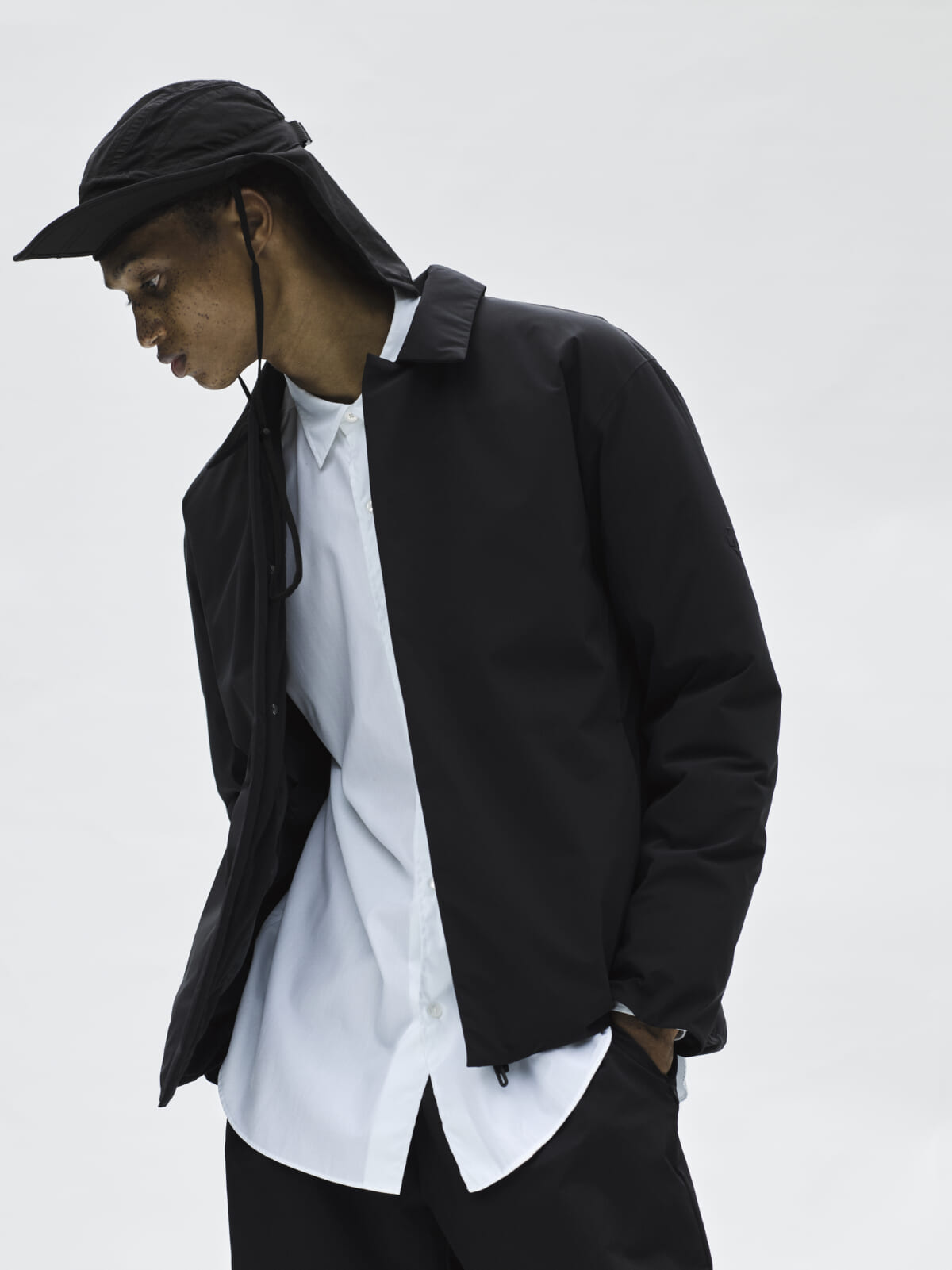 水沢ダウンの特徴である高い防水性と保温性はそのままに、熱接着ノンキルト加工やその他ディテールを全てプロダクトの内側に潜め、より都会的でミニマルなデザインを実現したコ ーチジャケット。ダウン量を従来の約60%に調整し、より軽やかな着心地を追求した軽量モデルです。