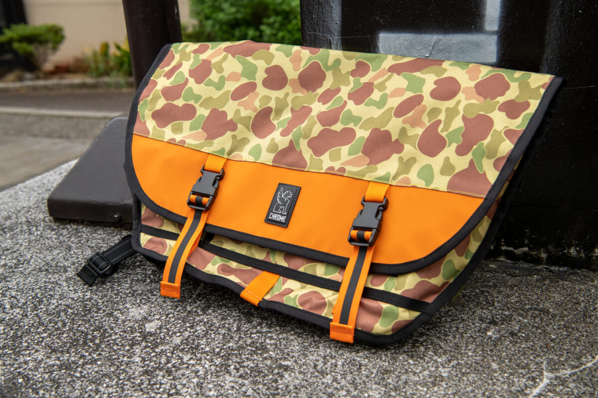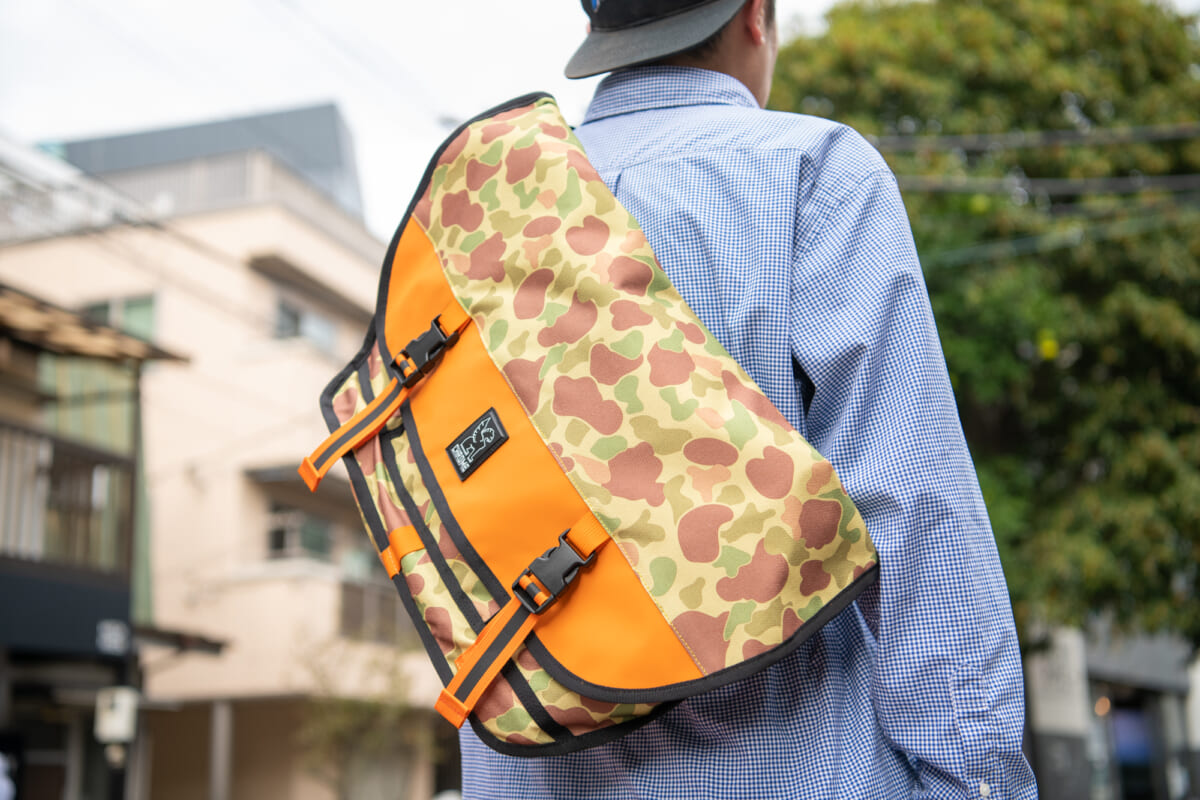 全天候型を実現した素材使いと、シートベルトバックルを採用したショルダーストラップなど、まさにクロームらしさを体現していると言っても過言ではありません。優れた機能性で使い勝手が良いことはもちろん、新色のダックカモによるスタイリッシュなルックスもバツグン! どことなく温かみのあるカラーリングで、秋のコーディネートにもピッタリですね。