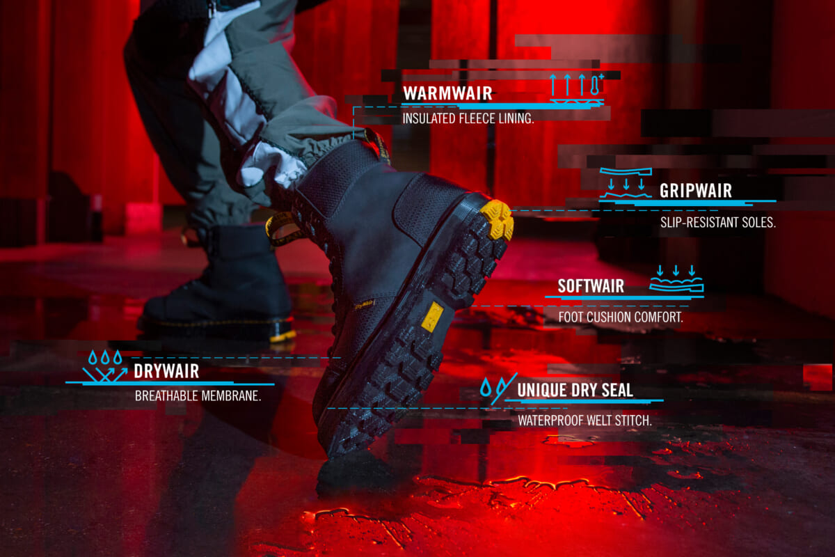 クッション性のある「SoftWair」インソールと、吸湿発散性のあるパッド入りのカラーを組み合わせて、履き心地も向上。防滑仕様の「GripWair」トレッドを搭載し、雨や雪などの悪天候や、凍結した地面でもしっかり足元を捉えます。