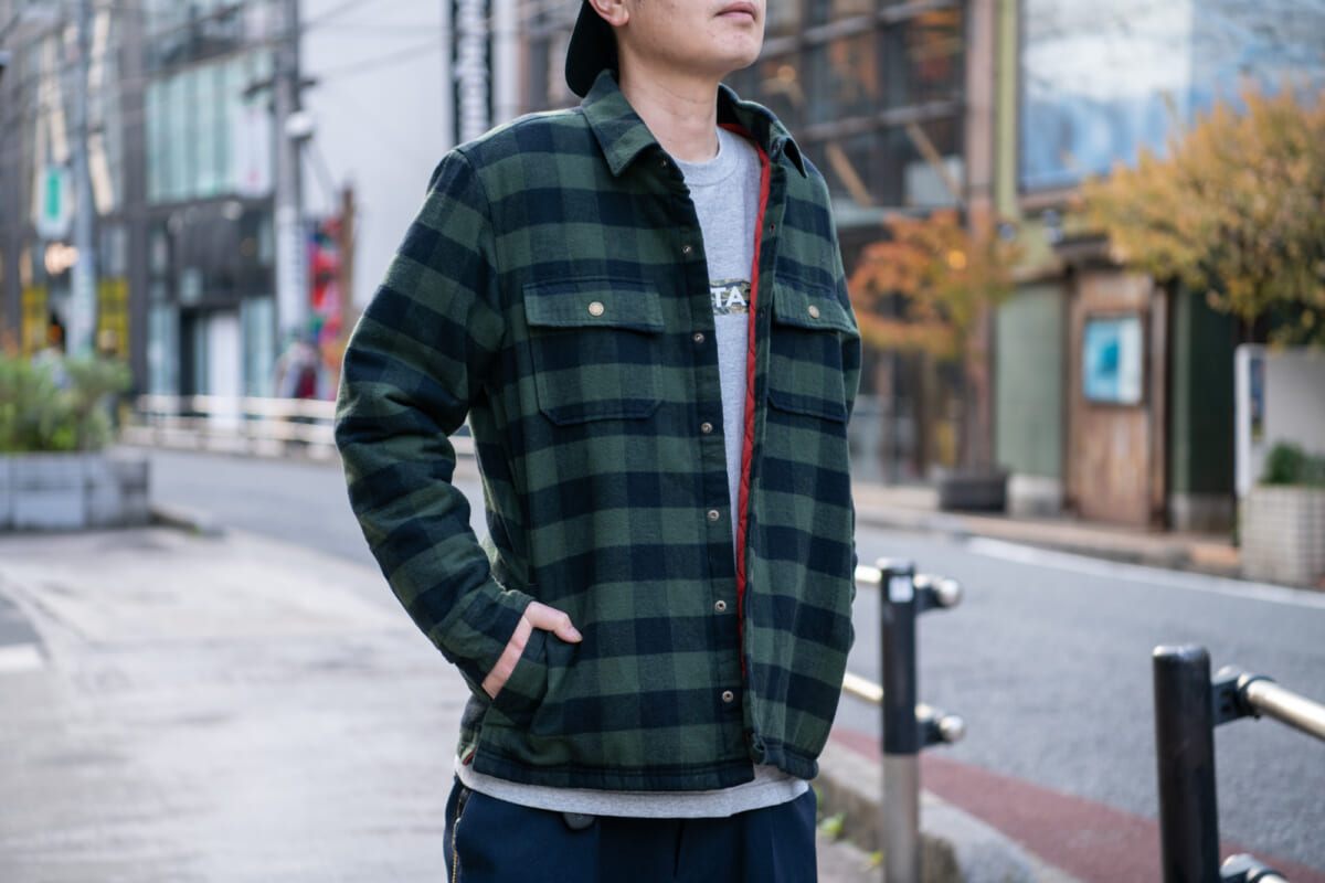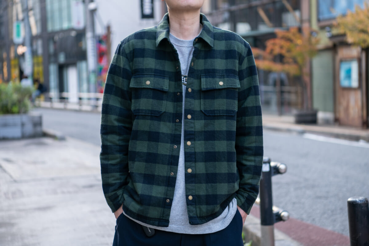 本作は、シャツとアウターの中間的なカテゴリーにあたる、いわゆる“シャツJKT”と呼ばれるカテゴリーにあたるトップスになります。ベースとなっているのは、L.L.Beanの創業者である「レオン・レオンウッド・ビーン」が、1927年に開発した伝統的シャツ「ビーンズ・レザーレット・シャツ」。今作ではその伝統的なシルエットや素材感を継承しながら、キルティングのライナーを加える事で、保温性をさらに高めています。