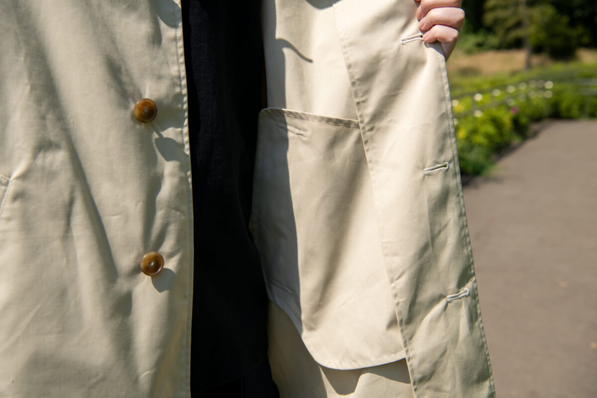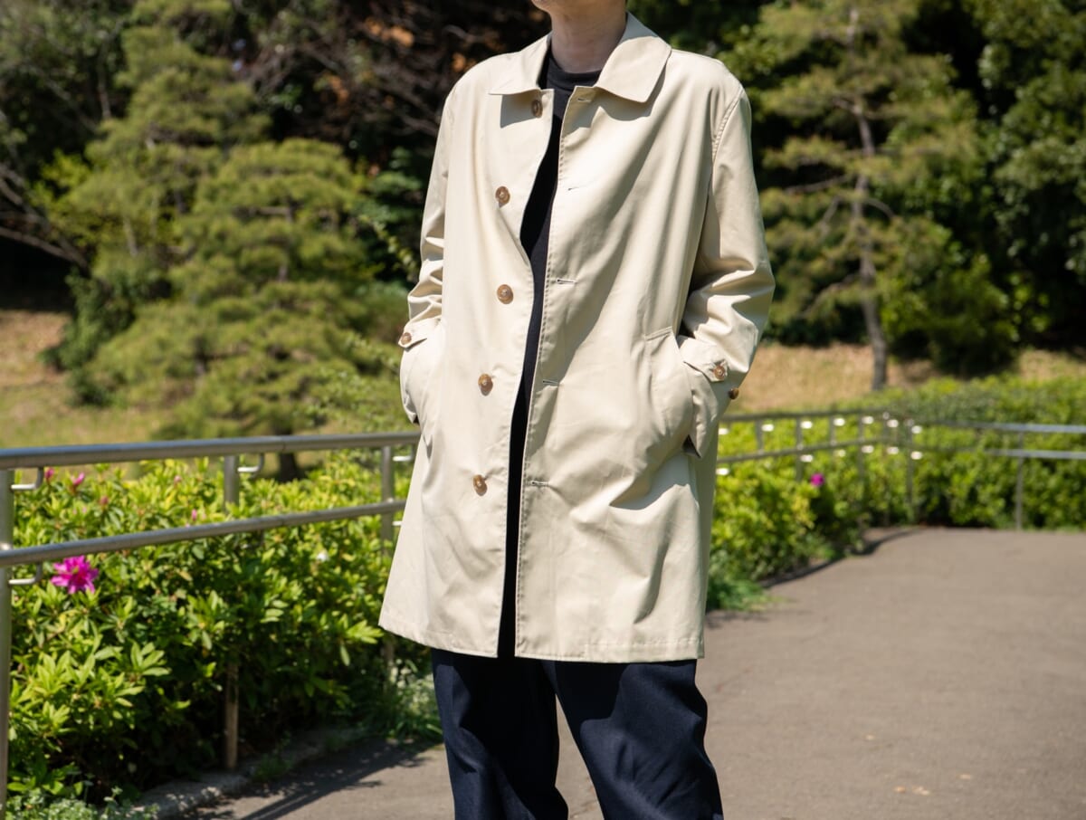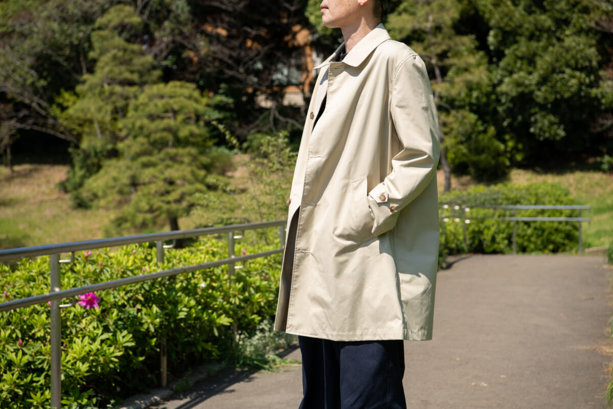雨に濡れればコットンが膨張し、ナイロンを圧縮して雨の侵入を防ぎ、乾けばコットンのナチュラルな通気性が、衣類内を快適な環境に整えてくれるのが特徴。そんな60/40クロスをアレンジした“65/35クロス”を使用した「65/35 ライトスプリングコート」を紹介します!