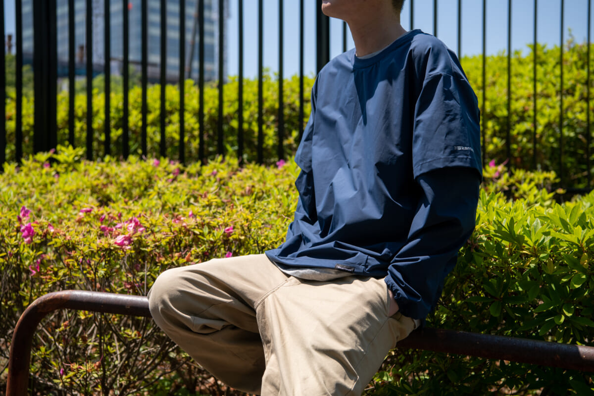 2 ウェイ クルー最大の特徴といえるのが、2WAY仕様にデザインされた袖。本作一着でロング、ショートスリーブを使い分けられるので、外出先での気温変化や環境の変化に素早く対応できます。生地が伸縮自在の素材で、わざわざ着脱をする必要なく袖の出し入れが可能なので、ストレスなく快適に過ごせる点が魅力です! そして、突然の雨でも安心の撥水性も備えています。