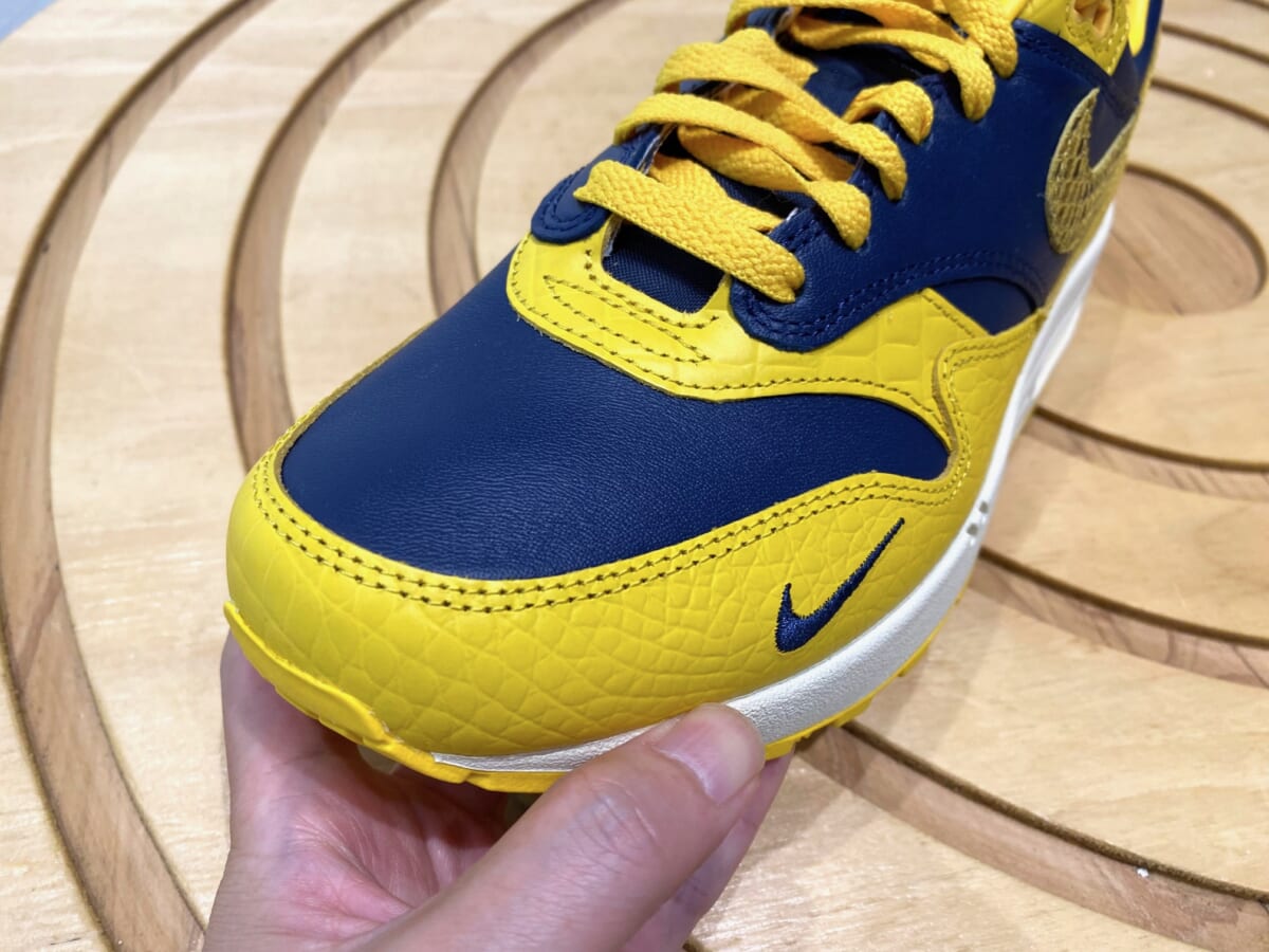 このカラーリングは、90年代を知るスニーカー好きたちには堪らないのではないでしょうか? つい最近では「ナイキ ターミネーター」にもミシガンカラーが登場して、かなり興奮しましたが、まさかエア マックス 1でも登場するとは!? 目を惹く配色なので、夏のショーツスタイルに映えますね。
