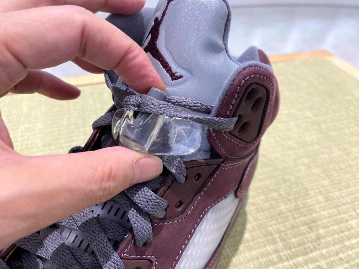 シューレースにはエア ジョーダン 5のアイコニックディテール、シューレースロックを装備しています。