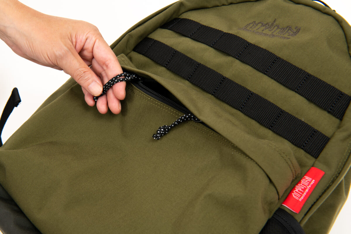 ジッパーの引手には掴みやすい丸コードを採用。さらにそのコードにはリフレクター素材が織り込まれていて、夜間などでの視認性を高めています。