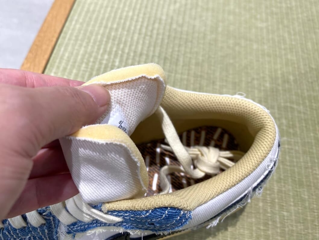 トゥのマッドガードなどオーバーレイはデニムをオン。さらに日本の伝統的刺しゅう「刺し子」をイメージしたステッチが配され、オリエンタルな雰囲気を醸し出しています。
