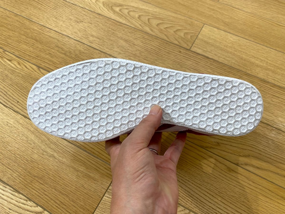 小さなスパイクが密集したような平坦なアウトソール。90年代にはスケートコミュニティでガゼルの人気も高かったです。