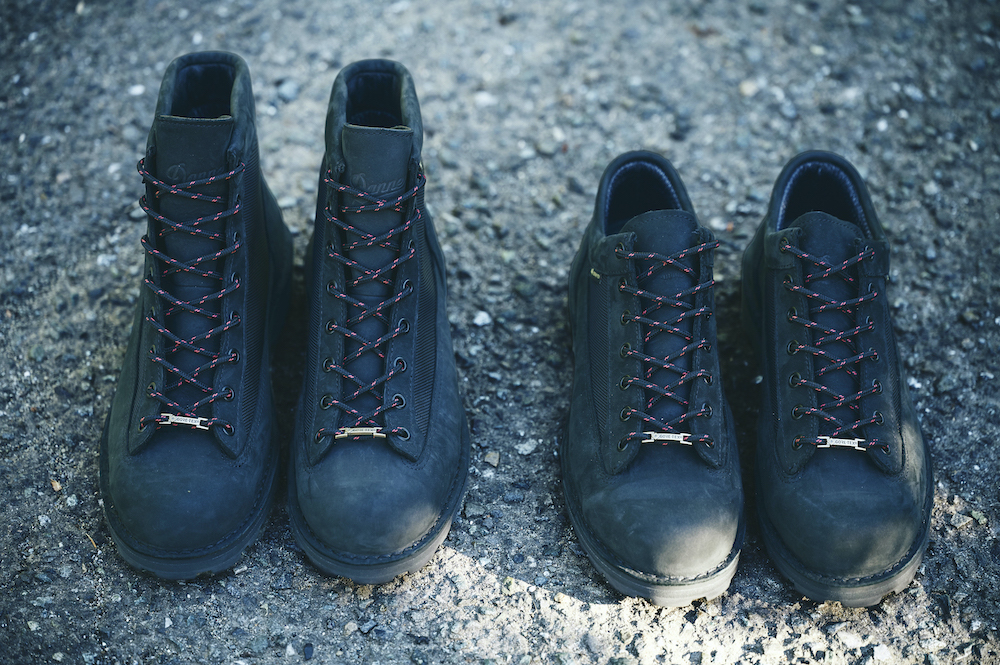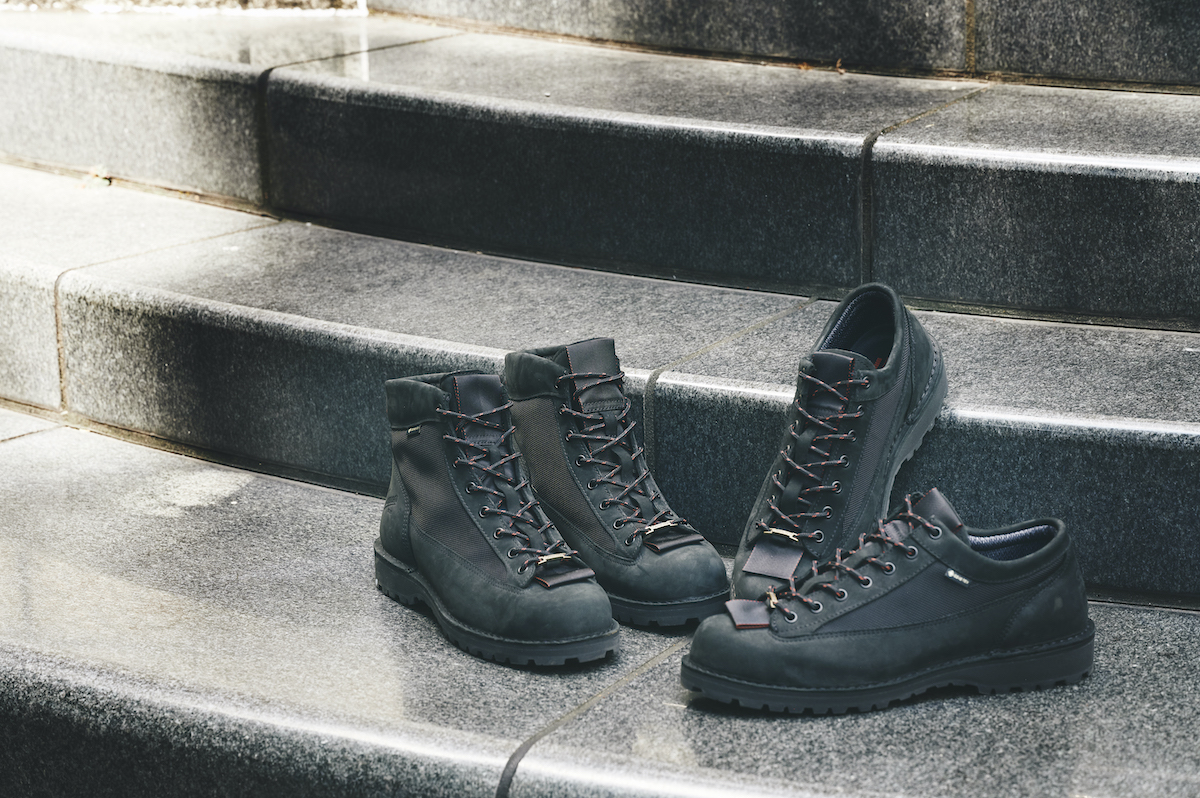 “街使いとアウトドアをシームレスに繋ぐ”という両社の価値観が合致したことによって生まれたコラボレーションシューズ。昨年のコラボレーションに続き「DANNER FIELD」をベースに、ローカットとハイカットの2タイプ登場します。ブラックとオリーブカラーの2色展開。