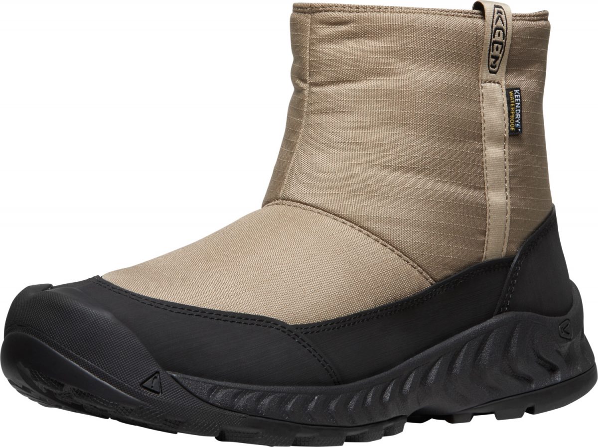 「HOOD NXIS PULL ON WP(フッドネクシス プル オン ウォータープルーフ)」は、KEEN.WARMによる保温性と防水透湿素材 KEEN.DRYによる防水性はそのままに、踵に伸縮素材を採用した脱ぎ履きしやすいパフブーツデザイン。ソフトなクッショニングとグリップ力で定評のあるKEENのハイパフォーマンストレイルシューズ「NXIS(ネクシス)コレクション」のソールシステムをハイブリッドしています。メンズ全3色。