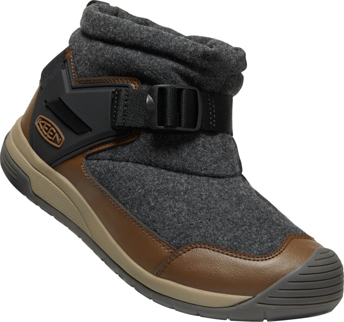 ソフトな中綿入りのアッパーとマイクロフリースのライニング、そして独自の保温素材KEEN.WARM(キーン・ウォーム)が足首までしっかりと包み、冬の寒さでも足元をしっかり防寒。シンセティック素材のマッドガードをつま先部から側部に施すことで、アッパーの耐水性・耐久性・サポート性も高めています。足裏形状に合わせて立体成型されたフットベッドは心地よいクッション性を生みだします。