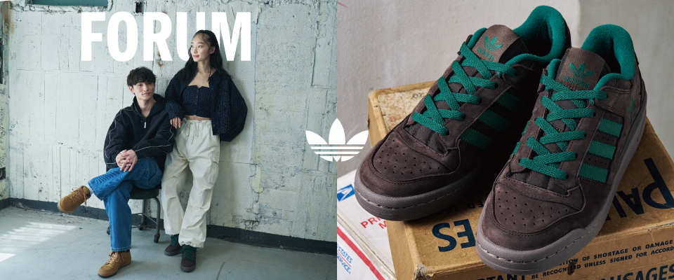 80年代にバスケットボールシューズとして登場し、コートのみならず音楽などのカルチャーシーンに絶大な人気を博したFORUMを採用。アンクルストラップを取り除き、よりデイリーユース向けにソリッドにデザインした「FORUM CL」。アッパーにヌバック素材を採用し、アウトドアブーツをイメージした落ち着いた雰囲気のカラーリングは秋冬の装いを強調してくれる一足です。