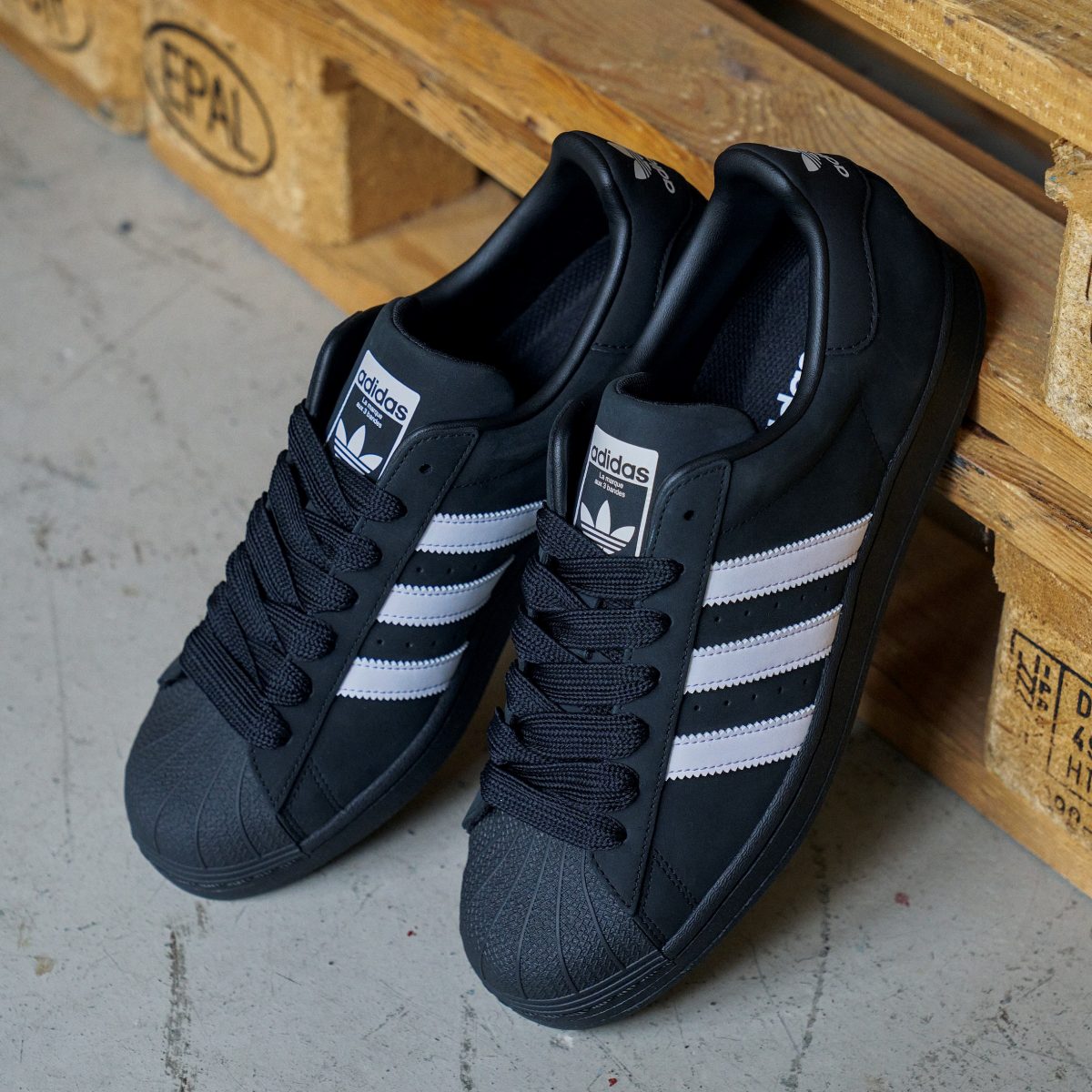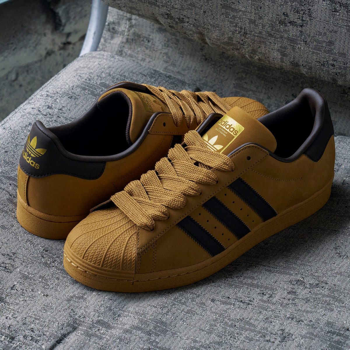 1969年にバスケットボールシューズとして誕生し、スケートボーディングやヒップホップシーンで人気を集めた「SUPERSTAR」。アッパーにヌバック素材を採用し、通常より太めのシューレースをアクセントにしています。落ち着いた雰囲気のカラーリングは秋冬シーズンの強い味方に。