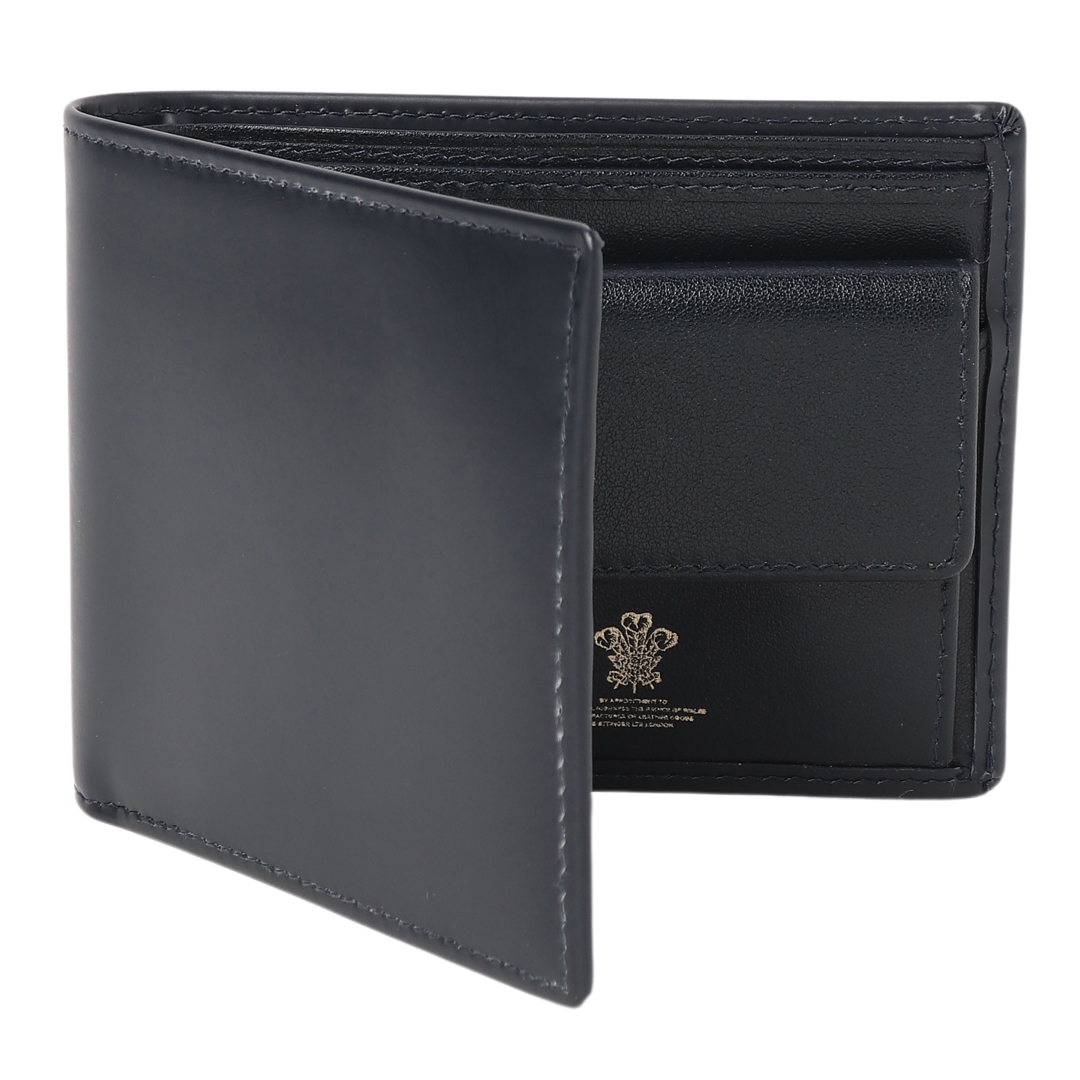 オリジナルのブライドルレザーに、ネイビーをセレクト。中はカーフ。外の質実剛健なイメージとは異なり、カーフのしなやかでツヤがある個性を重んじて、外見と中身でギャップがあると興味を惹かれてしまう、そんな紳士のようなカラーリングです。中を開けるとミッドナイトブルー。英国王室紋章とロゴがレイアウトされているベースは、グレーとなっています。