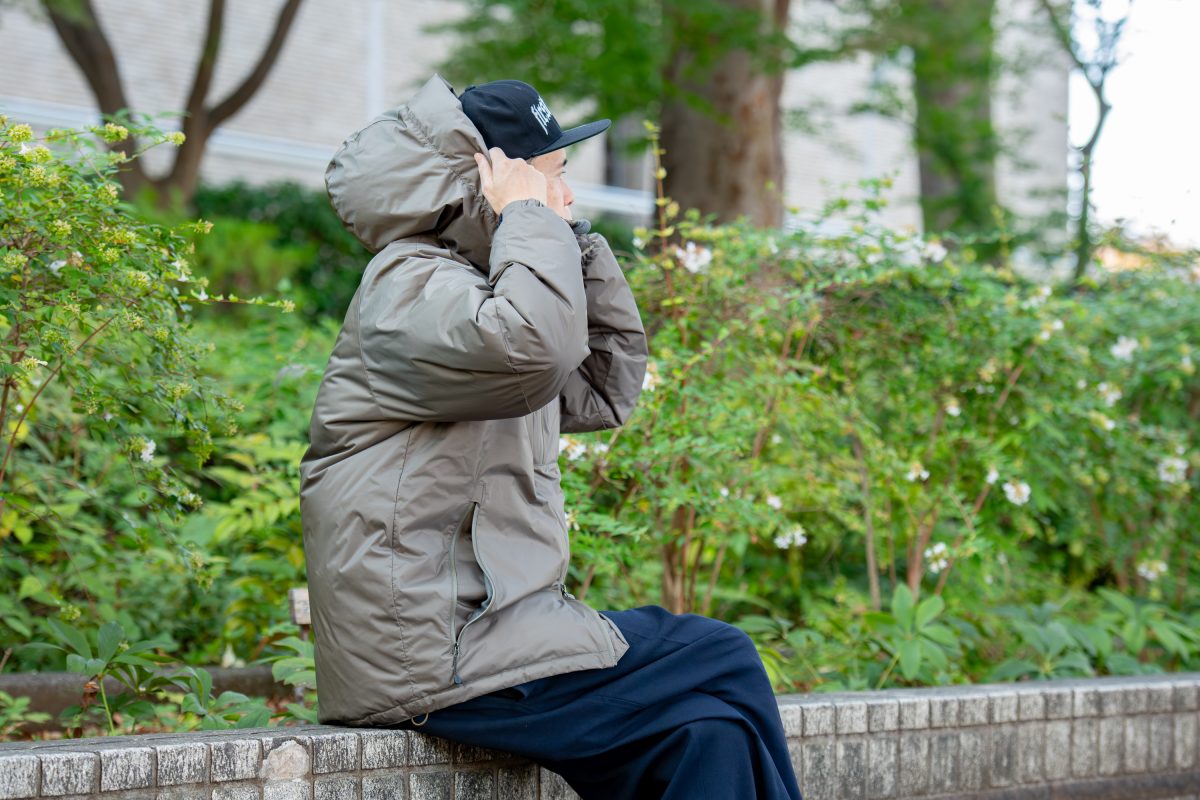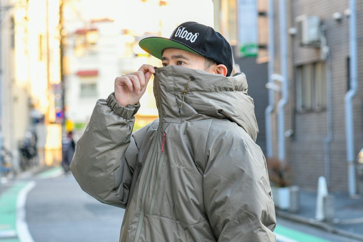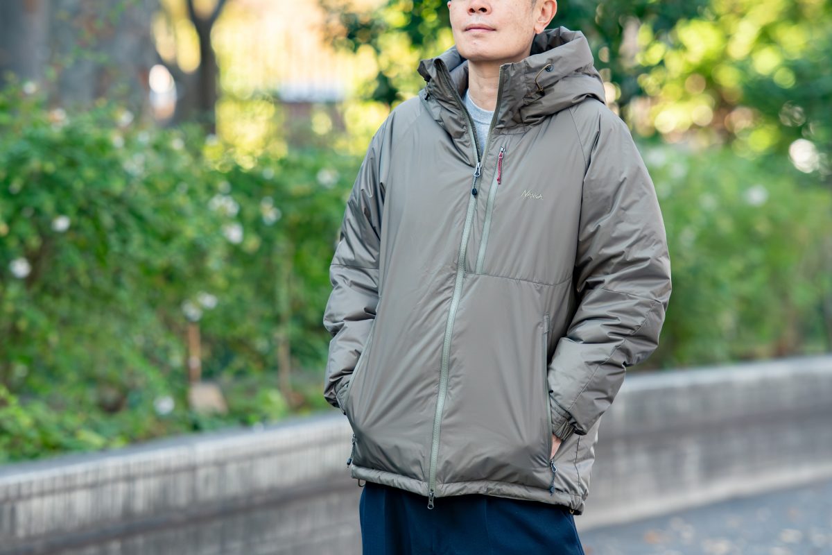 今回ナンガのオーロラダウンジャケットを着用して思ったのは、やはり街からキャンプシーンなど、さまざまなシーンにちょうどいい! デザインも機能性もちょうどいいです!! シルエットは少しゆとりを持たせて、パーカーやニットなど厚手のインナーも着こめるようになっていて、サイズ感もバッチリ。