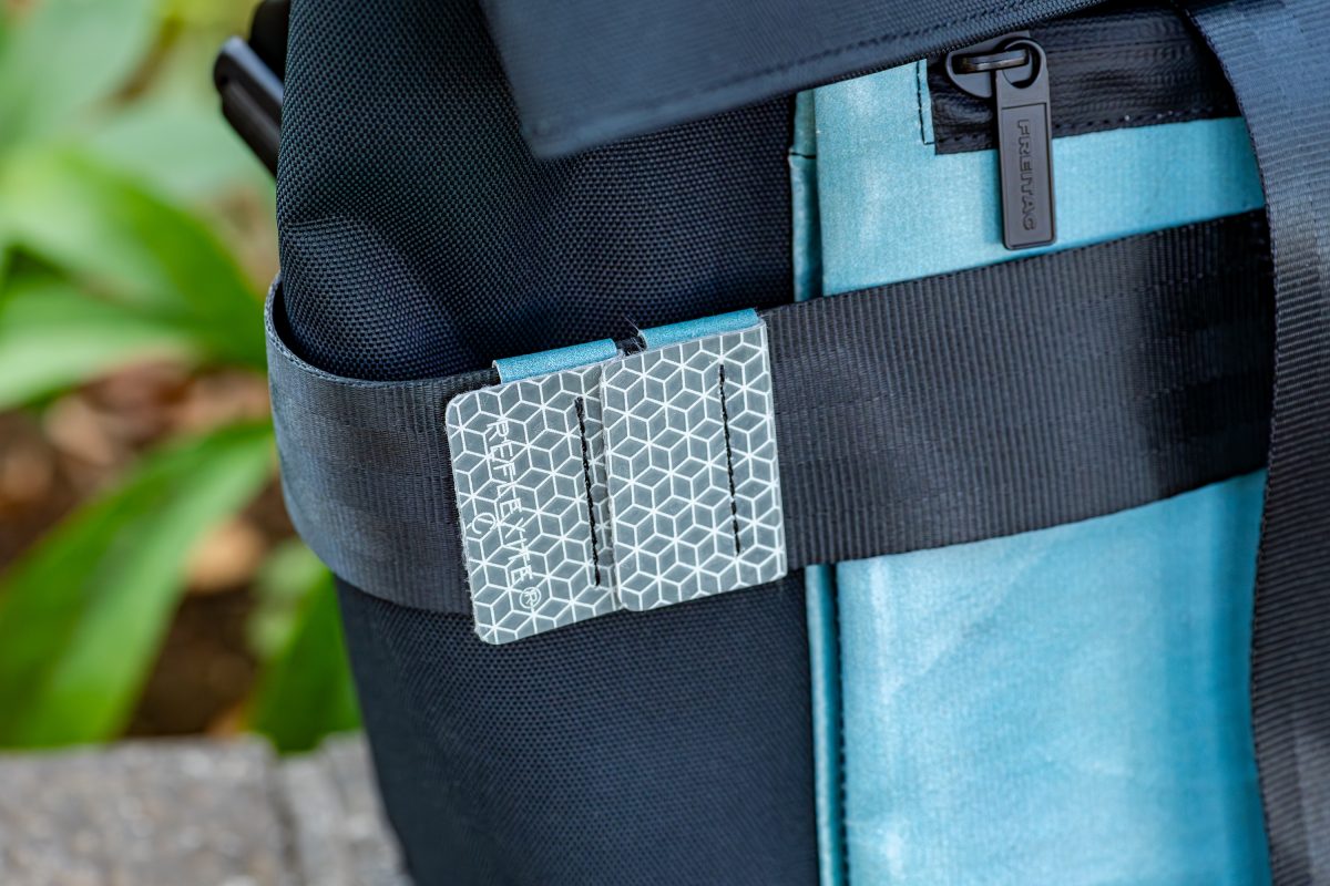 F680 ANDERSONはリサイクル材やアップサイクル材、B級品と、製品全体に対して約72%の再生材料を使用。ボディ素材にはPFCフリーのリサイクルペット素材が使用されており、環境に配慮しながらも高い耐久性を誇ります。また、リサイクルのリフレクトテープがバッグの各所に施され、アクセントとして機能すると同時に夜間での視認性を高めています。地球環境配慮へのこだわりが感じられますね。