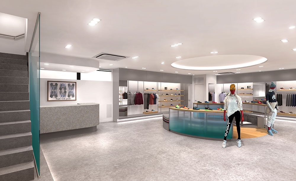 ニューバランス吉祥寺では、店舗での体験を新しくデザインし、中心に“商品”ではなく“人”を据えています。売り場に象徴的に設置したコミュニティサークルを中心に空間を作り、スタッフと客、そして客同士のコミュニケーションが自然に生まれるように設計しています。人々が集い、互いにインスピレーションを得ながら、自分らしいスタイルを見つけることを目指した店舗です。