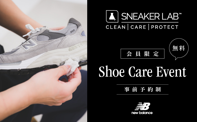 グランドオープンを記念して「Shoe Care Event」を開催。ユーザーのシューズを100%天然由来成分の【SNEAKER LAB(スニーカーラボ)】を使用し、スタッフがミッドソールを中心にキレイにケアします。事前予約制となります。