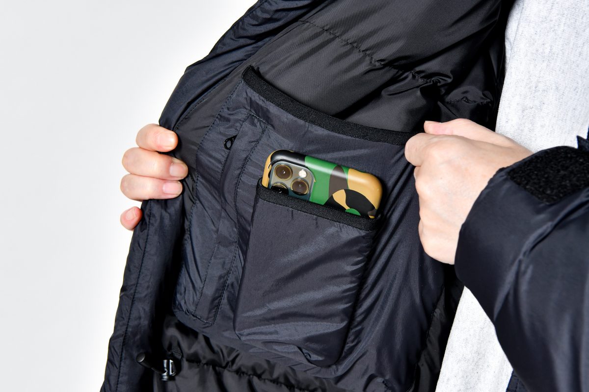 今作オリジナルのディテールとして、裾部分にもスピンドルを追加。裾からの風の侵入を防ぎ保温性を高めてくれます。