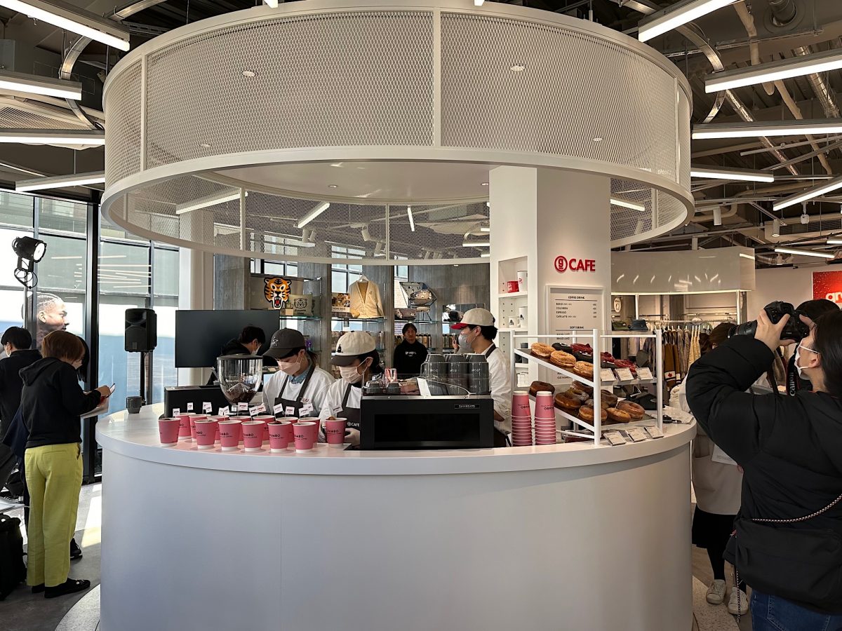 8つのゾーンのうちのひとつが、ブランド初となるカフェ「グラニフカフェ(graniph Cafe)」。こだわりのコーヒー&ドーナツを楽しめるインストアカフェで、コーヒーは福岡を拠点とするスペシャルティコーヒー専門店「REC COFFEE(レックコーヒー)」、ドーナツは東京を拠点にニューヨークスタイルのドーナツストアを展開する「DUMBO Doughnuts(ダンボドーナツ)」とコラボレーション。