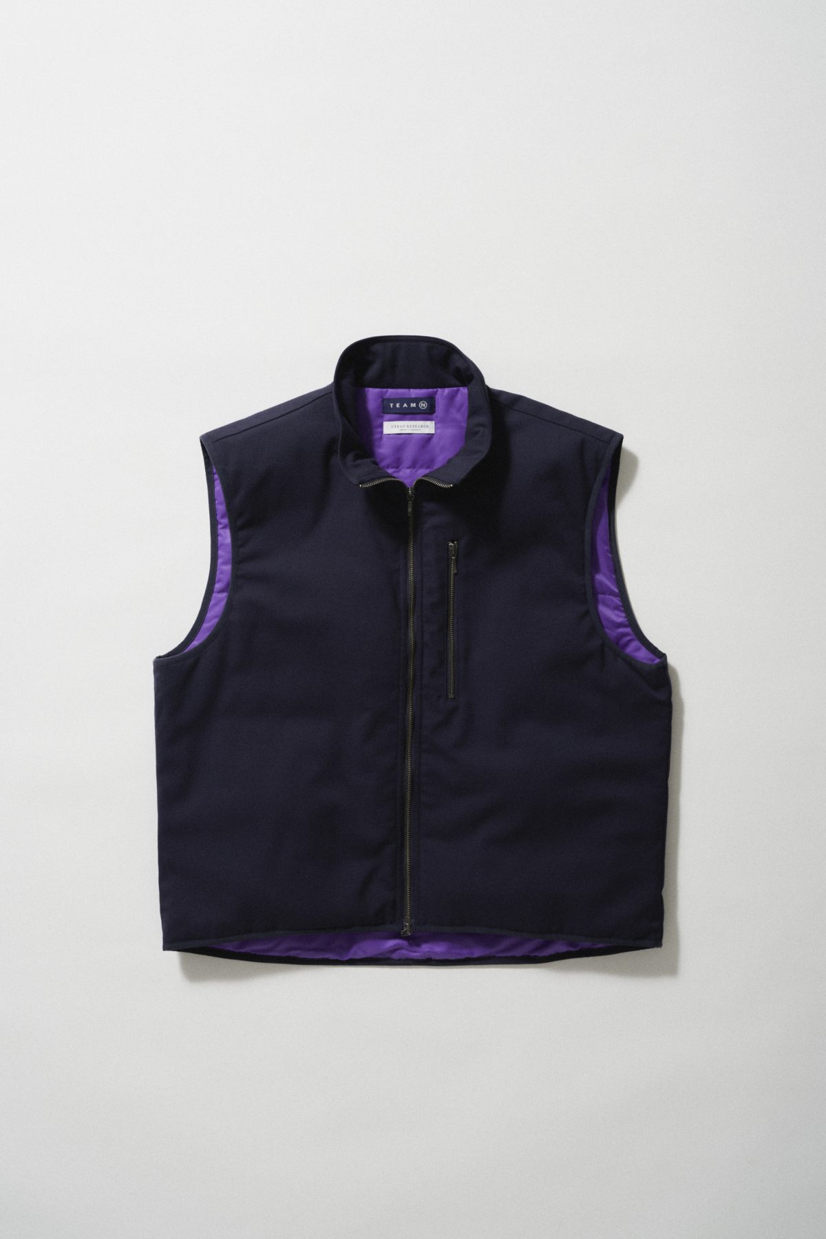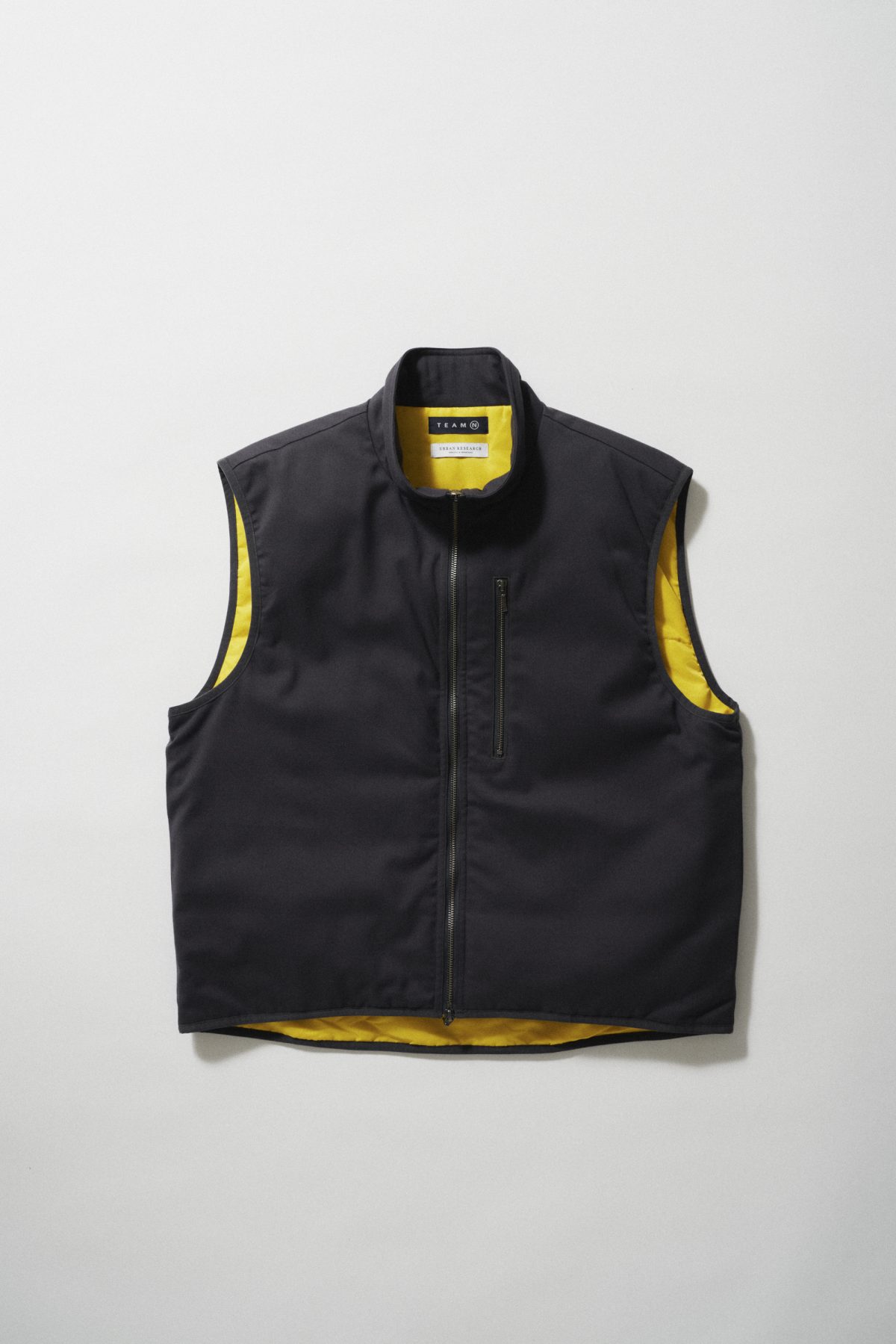 プルオーバー型のダウンベストをベースに、ジャケットのインナーにも着られるよう中綿にし、ほかのアイテムと自由に組み合わせがしやすいようにフルジップ型となっています。