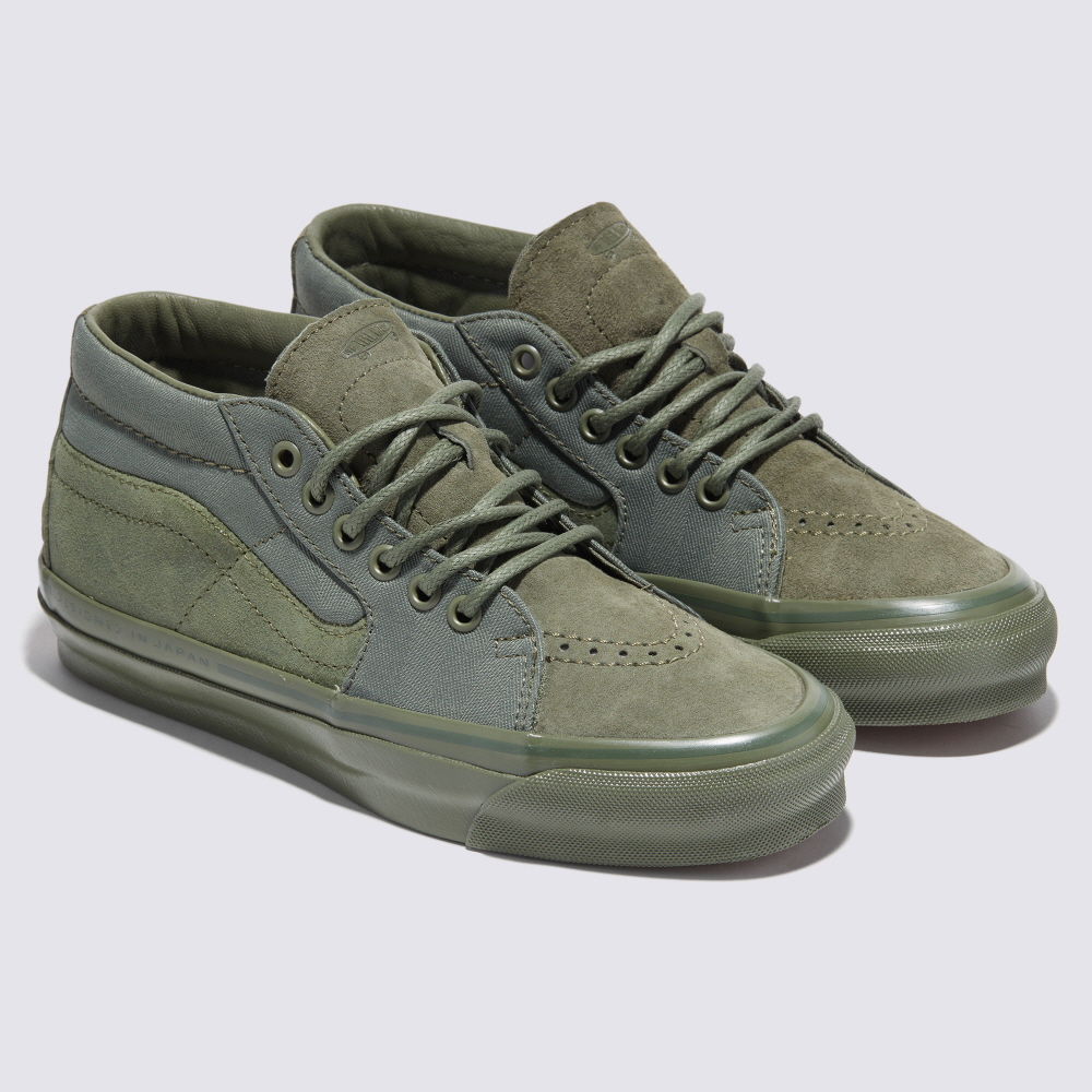 “BLOCK BY BLOCK” CAPSULEのコレクションにおいて象徴となるのがフットウェア「SK8-MID REISSUE 83 MG」。オイルドレザー、ヌバックレザーなどの異素材をミックスすることで、高級感と耐久性を向上。またシルエットはオリジナルの「SK8-MID」デザインの要素と現代風にアレンジされた履き心地の良さを兼ね備えており、さまざまなシーンやスタイルに対応します。
