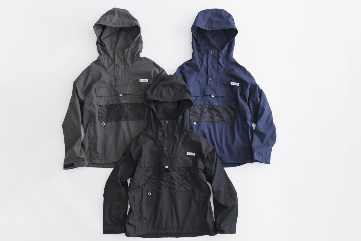 第二弾となる今回は釣りはもちろんのこと、キャンプや他のアウトドアアクティビティにも活きるディテールを備えつつ、街使いにもなじむカラーリングとコロンビアのブランドDNAを継承したスペシャルなラインナップとなっています。ラインナップはアノラックパーカ、フィッシングベスト、パンツ、ハット、ショルダーバッグの5アイテム。90年代のコロンビアPFGアイテムに見られるメッシュポケットをデザインの軸に現代的なアップデートを加え、セットで組み合わせも、単体としても存在感を放つアイテムに仕上がっています。