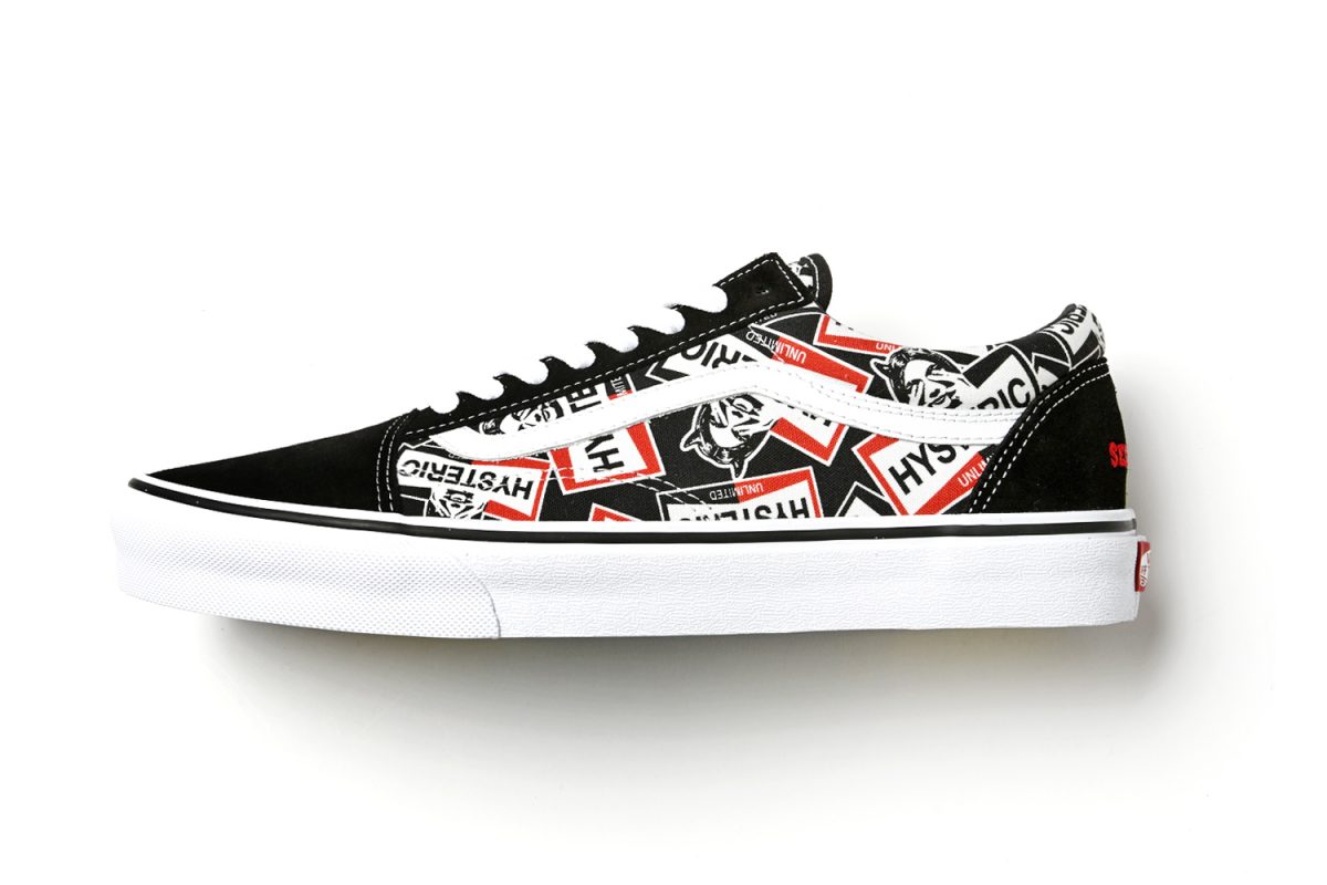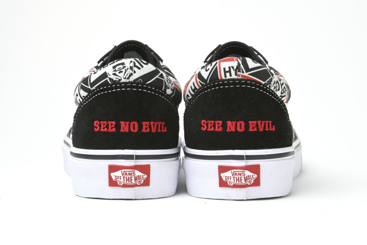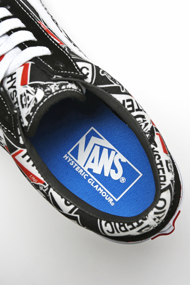 本作はアメリカンマッスルカー(大排気量で高いパフォーマンスを発揮するアメ車)からインスピレーションを得て、アッパーをHYSTERIC GLAMOURの人気モチーフの1つである“SEE NO EVIL”を総柄に採用した、特別仕様の「OLD SKOOL(オールドスクール)」が誕生しました。
