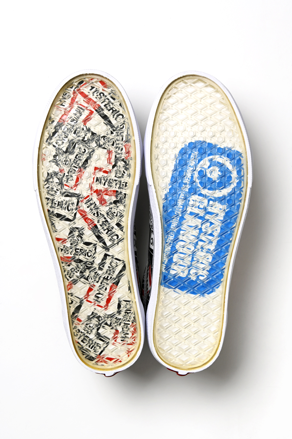 ソール部分には“クリアソール”を採用し、右足にはアッパーと同柄を採用、左足にはHYSTERIC GLAMOURの人気モチーフの1つである「CIRCLE GIRL」を用いたバックステージパスを表現。細部にまでこだわりつくしたコラボレーションとなっています。
