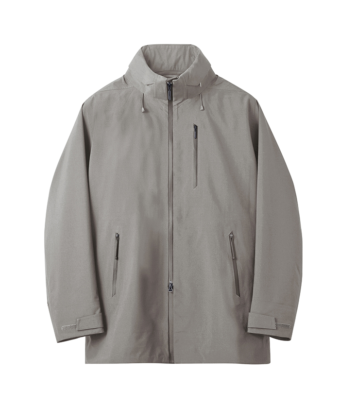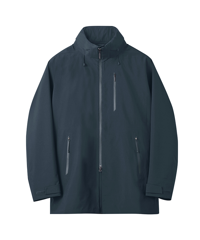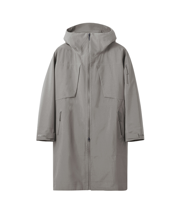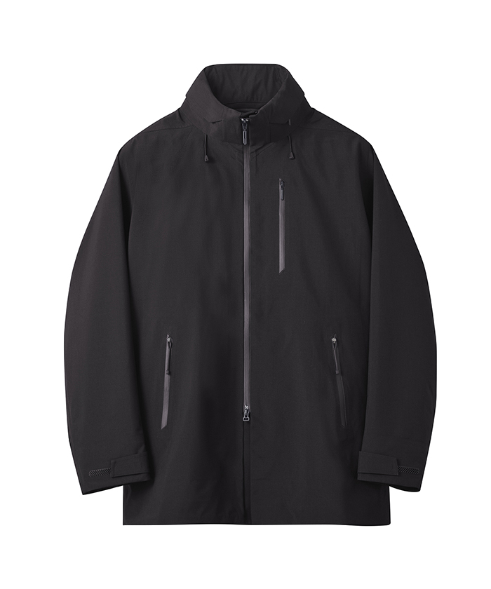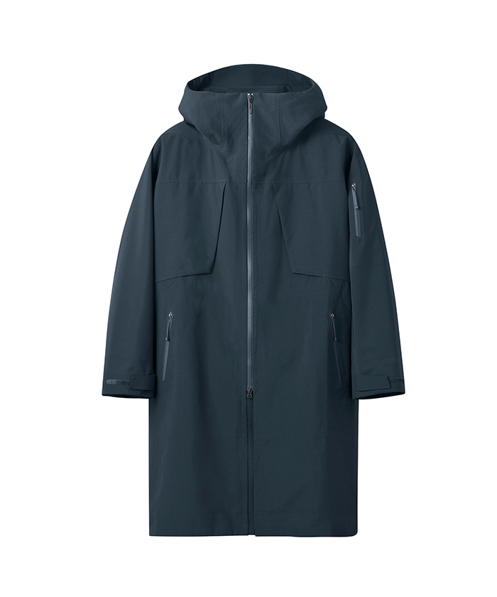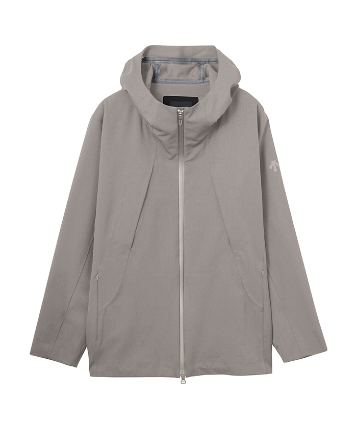 耐水圧10.000mmを有し、最大限の軽量化を目指しデサントが独自開発したボンディングウール素材のハードシェルフーデッドコート。数あるメリノウールの中でも、2/100で紡がれた柔らかな風合いの17.5マイクロンの極細メリノウールとリサイクルポリエステルをミックスさせた3レイヤー素材は、ウール本来の深みのある表面感やドレープ性を保ちながら、優れた耐久性と耐水性を実現。ウールの特性である高い吸放湿性が衣服内の湿気を素早く吸収してウェアの外へ放散。フロントジッパーには衣服内にこもりやすい不快な熱や湿気を効率的に排出するデュアルベンチレーションシステムを搭載。2列のジッパーとその間に配置されたメッシュ生地が外気を取り込み、衣服内にこもりやすい不快な熱や湿気を逃がすことが可能。袖口は雨に濡れてもホールド力を保ち、フィット性に優れるブロックフィットアジャスターを装備。ボリュームある身幅と⻑めに設定された着丈が、さまざまな環境に対応。