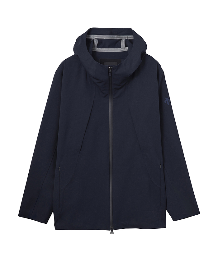 ハードシェルジャケットは耐水圧10.000mmを有し、最大限の軽量化を目指しデサントが独自開発したボンディングウール素材を採用。フロントジッパーには衣服内にこもりやすい不快な熱や湿気を効率的に排出するデュアルベンチレーションシステムを搭載し、2列のジッパーとその間に配置されたメッシュ生地が外気を取り込み、衣服内にこもりやすい不快な熱や湿気を逃がすことが可能です。袖口は雨に濡れてもホールド力を保ち、フィット性に優れるブロックフィットアジャスターを装備。襟には収納フードを内蔵させ、急な天候変化にも対応します。