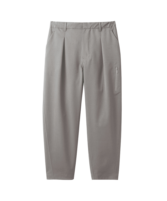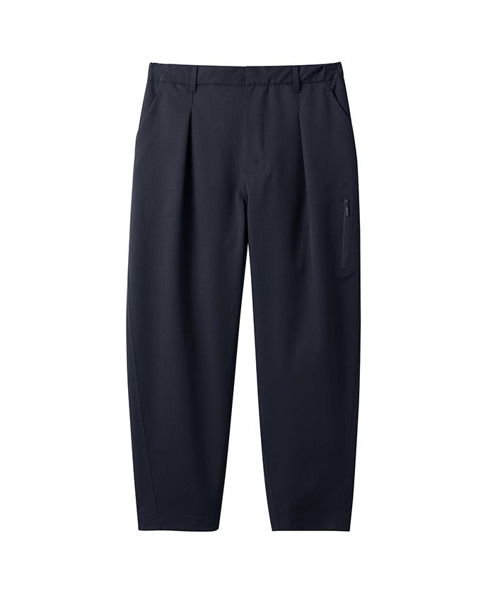 サイドポケット2つと左腿にジッパーポケットを配置し、ビジネスシーンでも着用できるようウエスト部分にベルトループを備えています。