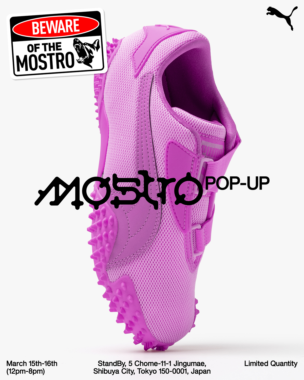 プーマ ジャパンは、「MOSTRO(モストロ)」の新作モデル「MOSTRO ECSTASY(モストロ エクスタシー)」の発売を記念したポップアップイベントを2024年3月15日と3月16日の2日間限定で東京・原宿キャットストリート「StandBy(スタンドバイ)」にて開催します。