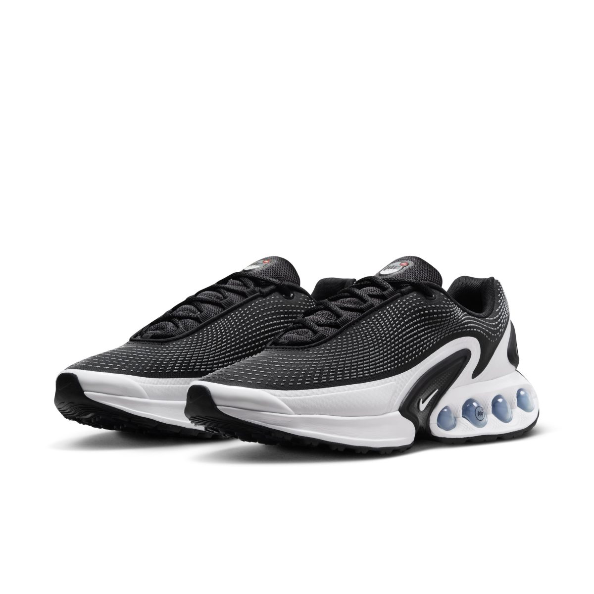 エア マックス Dnは、ナイキが30年以上も前から取り組んでいるフットウェア クッショニング変革の新世代を担っています。自己表現を足元から支える全く新しい形と、空気(エア)の上で歩くような感覚を提供します。初めて採用されるこのダイナミック エアは4つのチューブ状のナイキ エア バッグからなる構造で、驚くような快適さ、スムーズな乗り心地と今までにない弾性を提供します。エア ユニットの気圧は2種類で、踵は高め(15psi)、前足部は低め(5psi)に設定してあります。