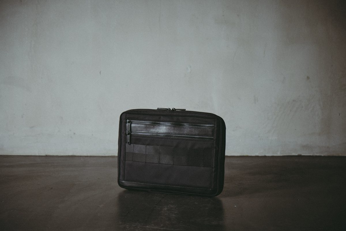 再ローンチしたBLACK LINEは、ビジネスをはじめとしたシーンで使ってもらいたいというデザイナーの思いから、様々なシーンに合うブラックカラーで纏め上げています。BRIEFINGの最上級ラインに相応しく、使用素材もナイロンとレザーのコンビネーション仕立てにし、ブランドのアイコンデザインである「レッドライン」を排除。PCやそれに纏わる周辺機器など持ち歩くものが多くなった現代のビジネスシーンを意識しています。