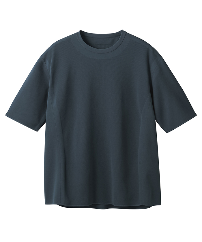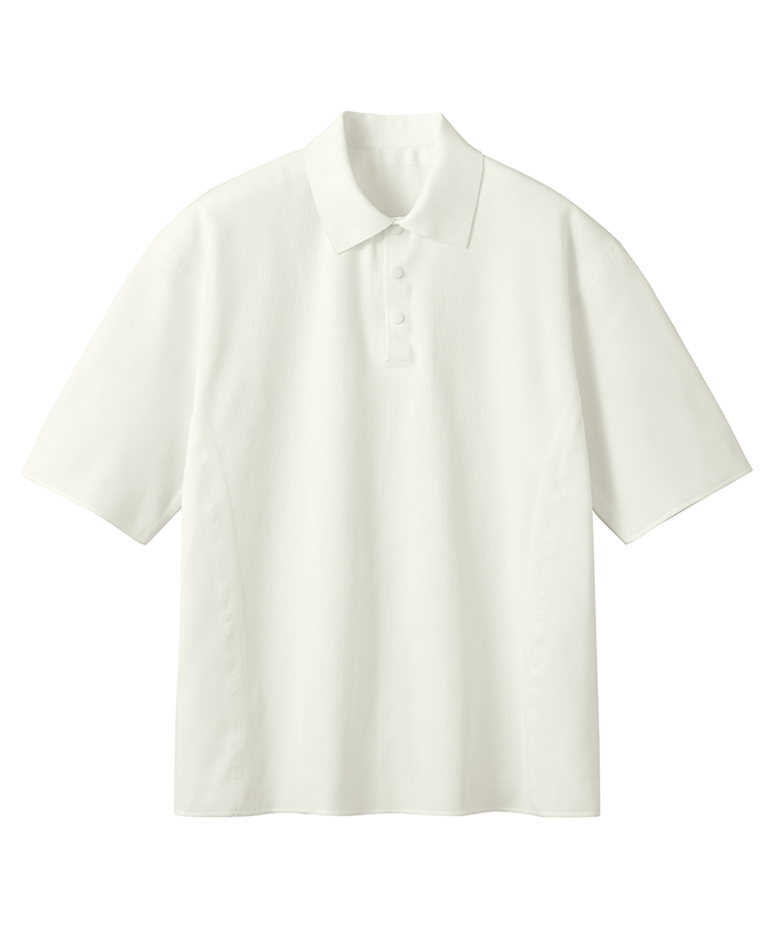 デサントが培ってきた技術とノウハウを融合(FUSION)させ、スポー ツウエアに求められる高い運動快適性を実現した「ハーフスリーブポロシャツ」。ポリエステル100%のニット素材にUV遮蔽性を付与し快適性を高めています。ニットソーの製法を応用し、スーパーソニック加工(超音波溶着加工)と熱接着加工の併用でシームレスデザインを実現。上品な雰囲気で適度に厚みのある生地は透けにくく、ビジネスシーンからゴルフなどのアクティブなシーンでも活躍する一着に仕上がっています。