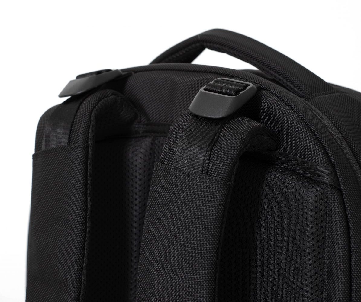 身体に直接触れるバックパネルおよびショルダーハーネスには、内部に肉厚のクッションを敷いたメッシュ生地を採用。ショルダーハーネスの付け根には、登山用ザックでよく見られるロードリフトストラップを備えています。