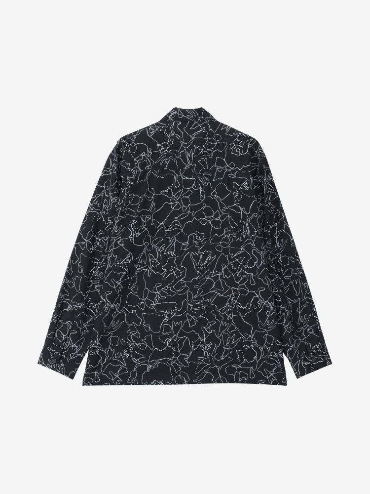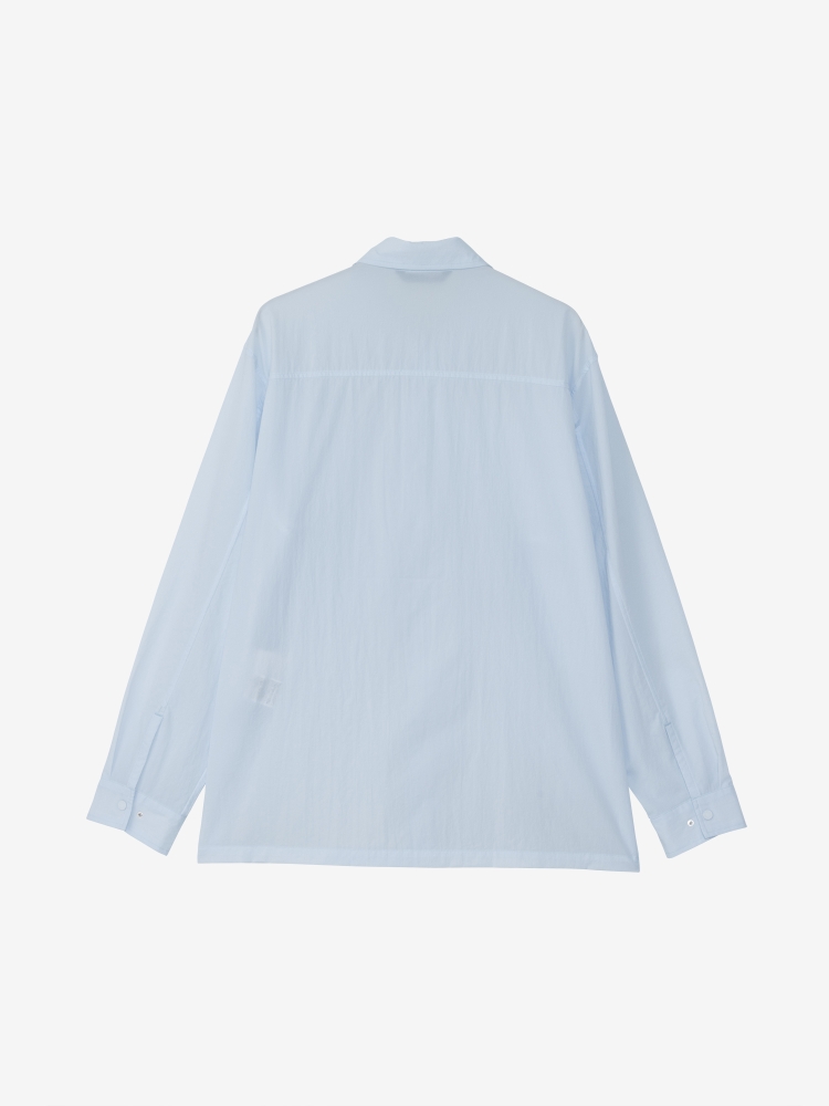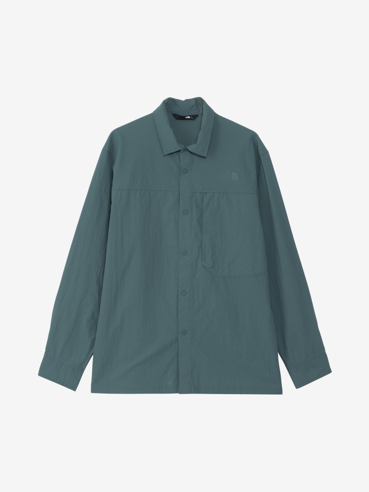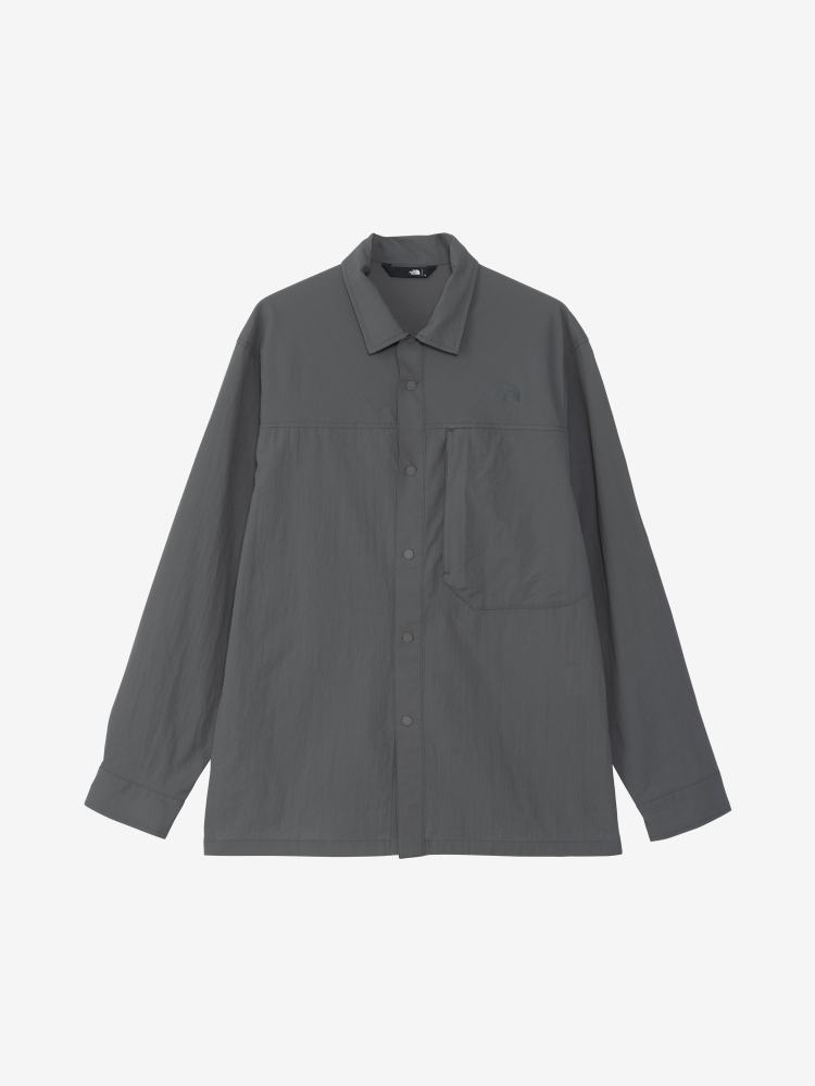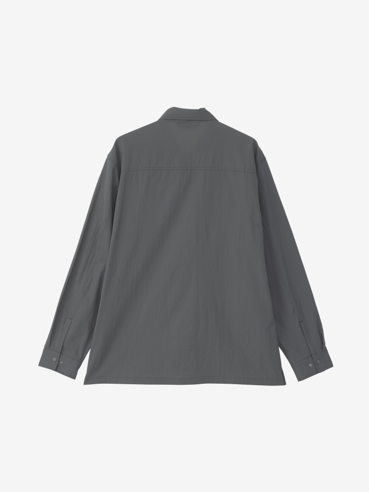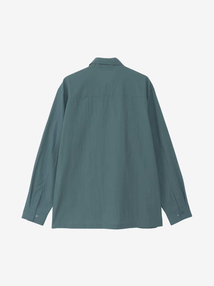 フロントは着脱のしやすいドットボタン仕様で、左胸には大きめのジッパーポケットを配置。裾のスリットはドットボタンで留めることができ、スリットを開くと大きめのベンチレーションとして通気性を高めることが可能。開襟にしても美しいスタンダードなカラーデザインはタウンユースにもなじみ、フィット感も街使いに最適なゆるめなシルエットのため、アウトドアで活用できる機能を搭載したテクニカルなモデルとなっています。